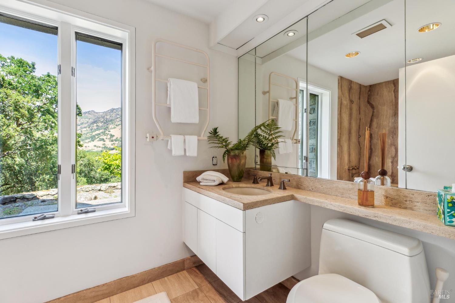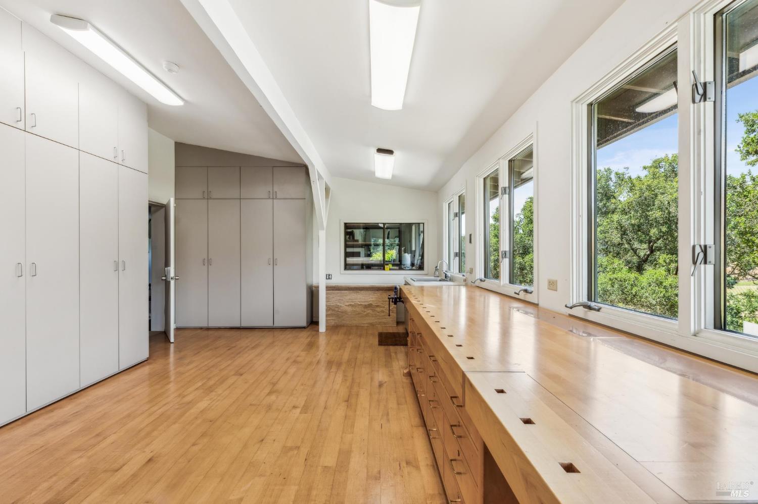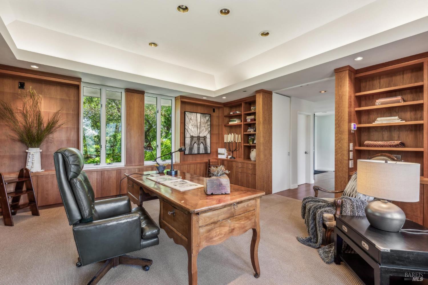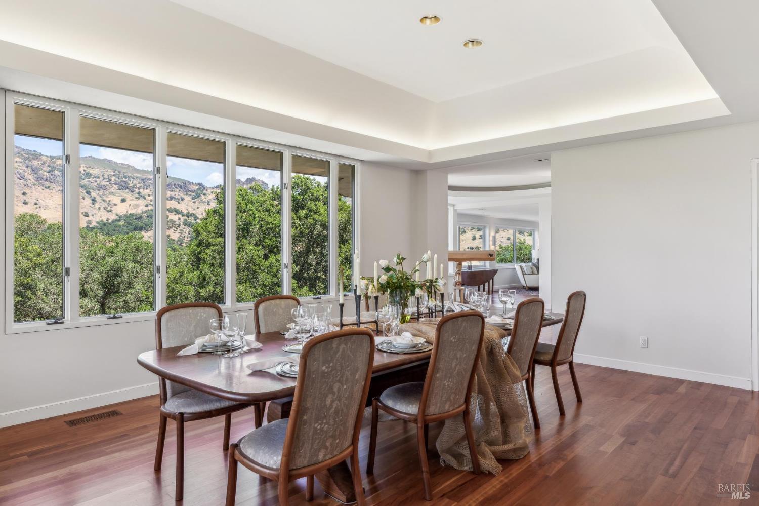 The incredible legacy of this estate will capture your imagination, while the beauty of the setting and the style and comfort of the home will capture your heart. Perched atop a knoll and anchored in bedrock, this 7,912 SF, 6-bedroom home commands views of Napa Valley with Stags Leap Palisades as the backdrop. Designed to take in the ever-changing light on the peaks, the home blends strength and artistry with restrained elegance. The glass-paneled doors open to amber wood floors and a gallery of windows. The warm bookshelf lined library is tucked down the hall, while the living room with open beams, stone fireplace, built-ins and hidden glass doors that partition it from the window gallery, then flows seamlessly to the bar & dining room with gorgeous views. The chef's kitchen features butcher block counters, a six-burner Wolf range, skylight, and is open to the family room. The west-facing primary suite offers a marble bath, deep soaking tub, and spacious dressing room. The lower level includes a former dance studio, additional bed & bath, woodworking shop, wine cellar, and guest suite with its own outside patio. Upstairs, three charming bedrooms feel like a secret retreat. Surrounded by gardens, and heritage oaks this 8.19 acres is history waiting to be loved and reimagined.Interested in this Listing?