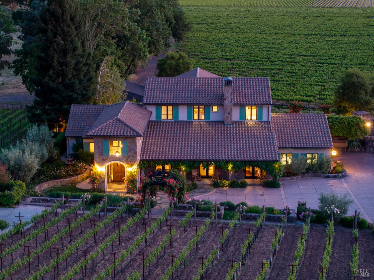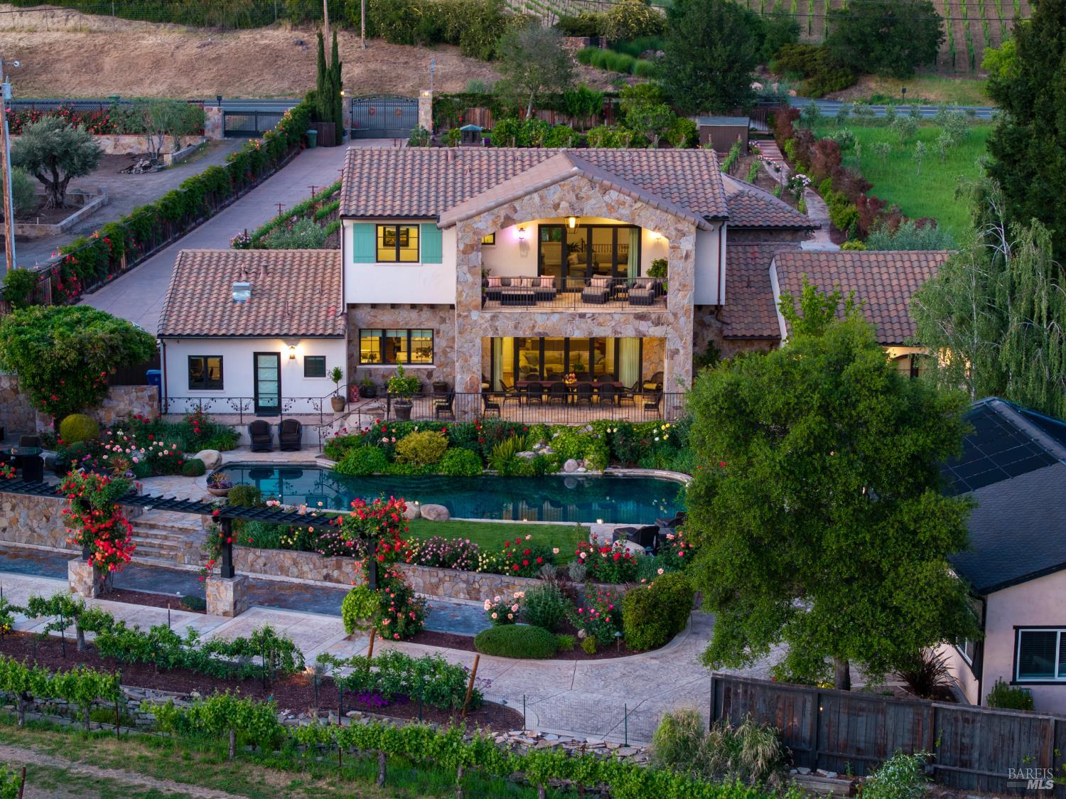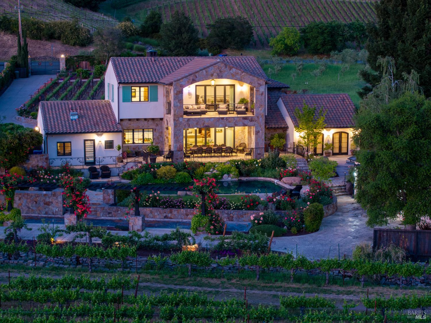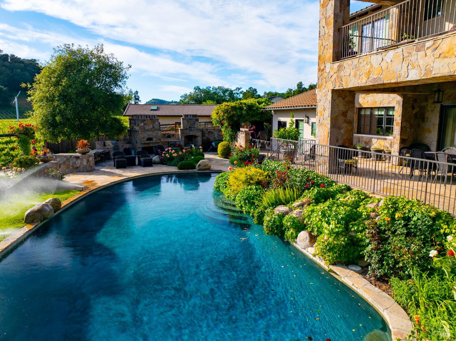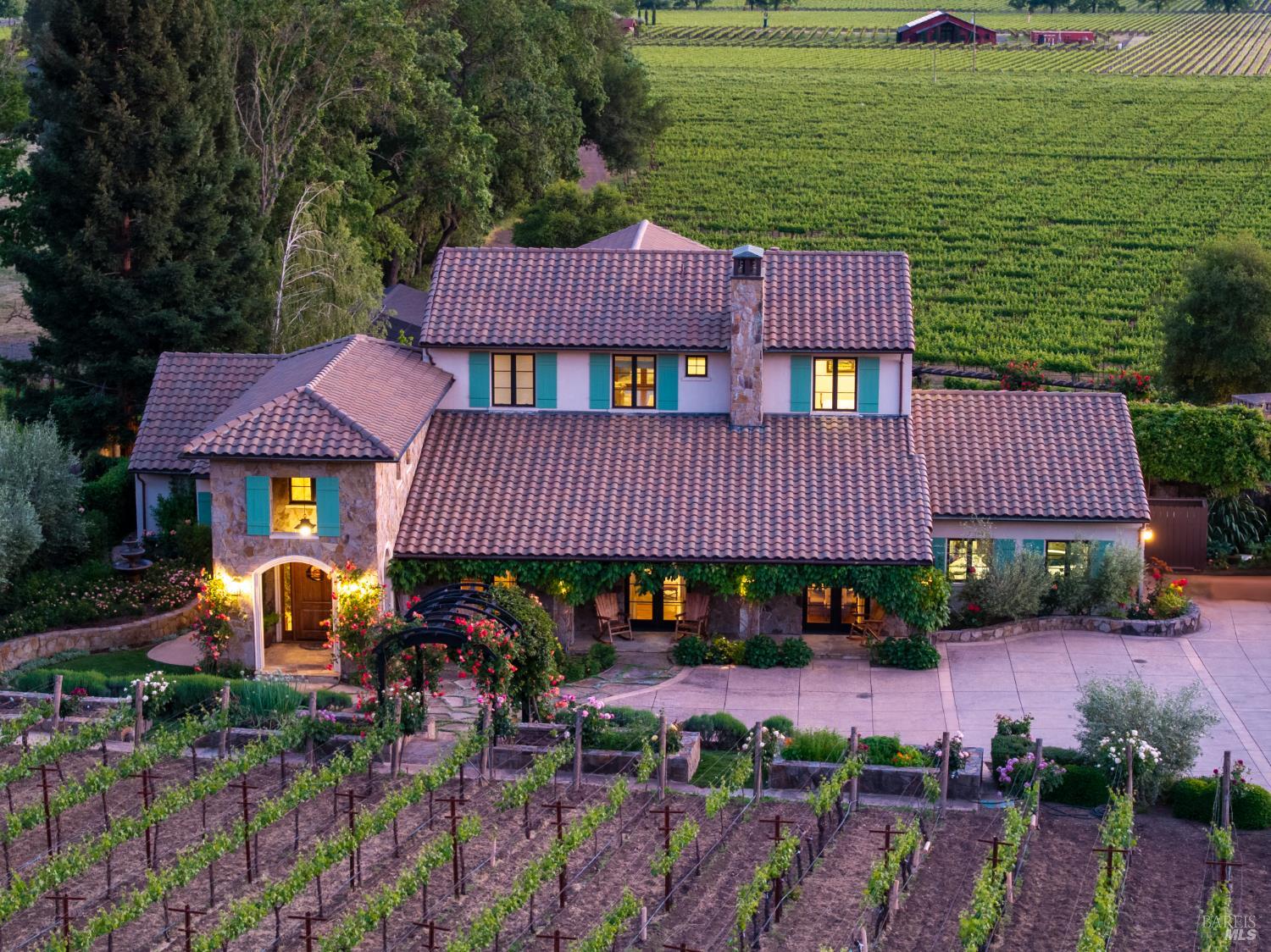 Set amidst the vineyards just outside the town of Yountville, this exceptional estate blends timeless architectural design with refined modern luxury. Built in 2018, the 2-story home offers 4 bedrooms & 4.5 baths, thoughtfully appointed with high-end finishes & artisan details. Rich wood floors, soaring ceilings, & expansive windows frame panoramic vineyard views, while multiple balconies invite seamless indoor-outdoor living. The main level features a luxurious primary suite with spa-like bath & private terrace, offering the ease of single-level living within a grander floorplan. At the heart of the home, a gourmet kitchen is outfitted with professional-grade appliances, custom cabinetry, & oversized island ideal for both entertaining & everyday living. A dedicated wine cellar & tasting area provide an enviable setting. Beyond the main home, a beautifully finished 1-bedroom, 1-bath guest cottage with full kitchen offers elegant accommodations for visitors. The property also boasts a resort-style pool, landscaped grounds, & Cabernet vines capturing the essence of Napa Valley living at its most luxurious. Just minutes from world-renowned dining and wineries, this extraordinary estate is a rare opportunity to own a private retreat in one of wine country's most coveted locations.Interested in this Listing?