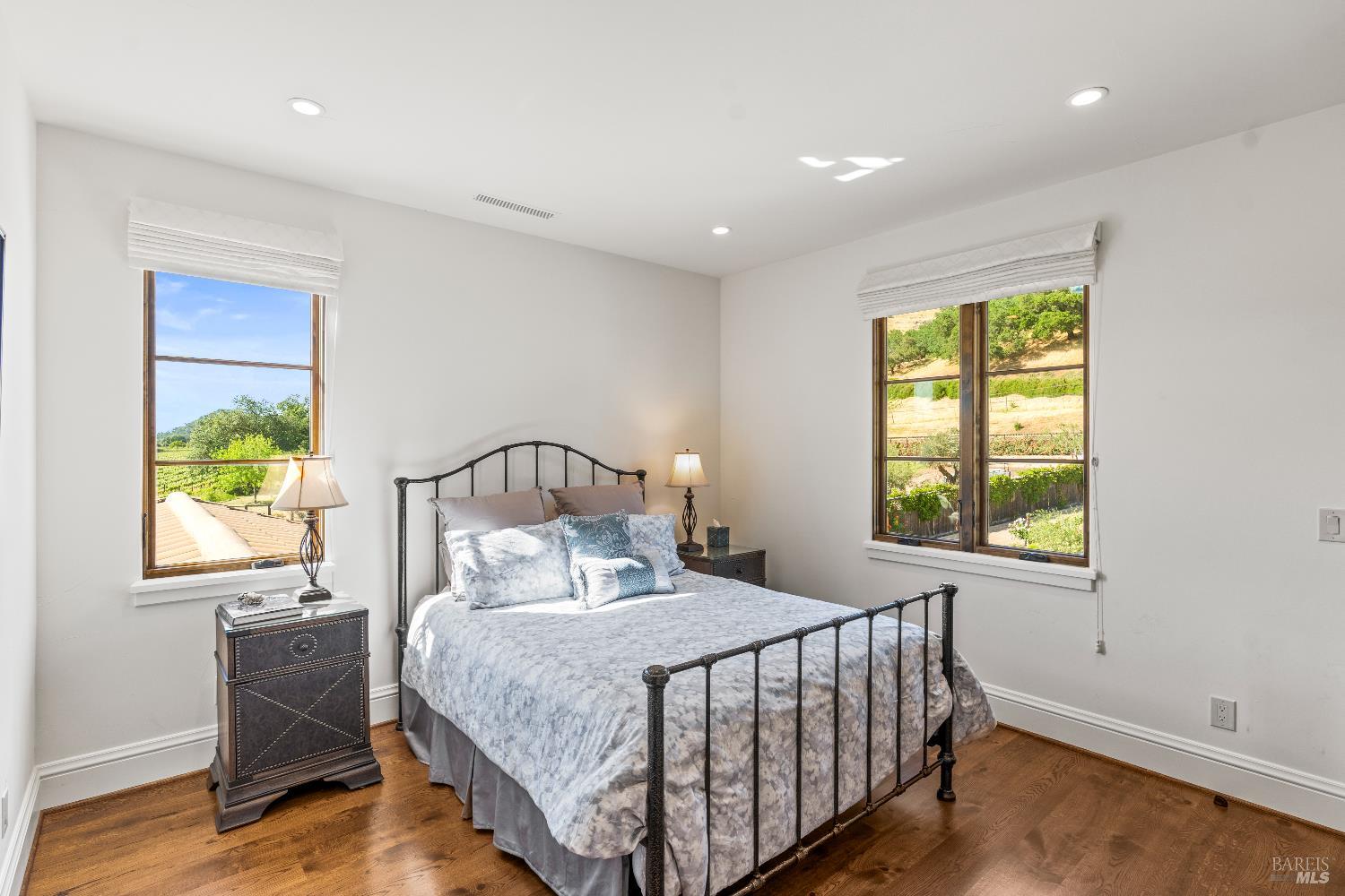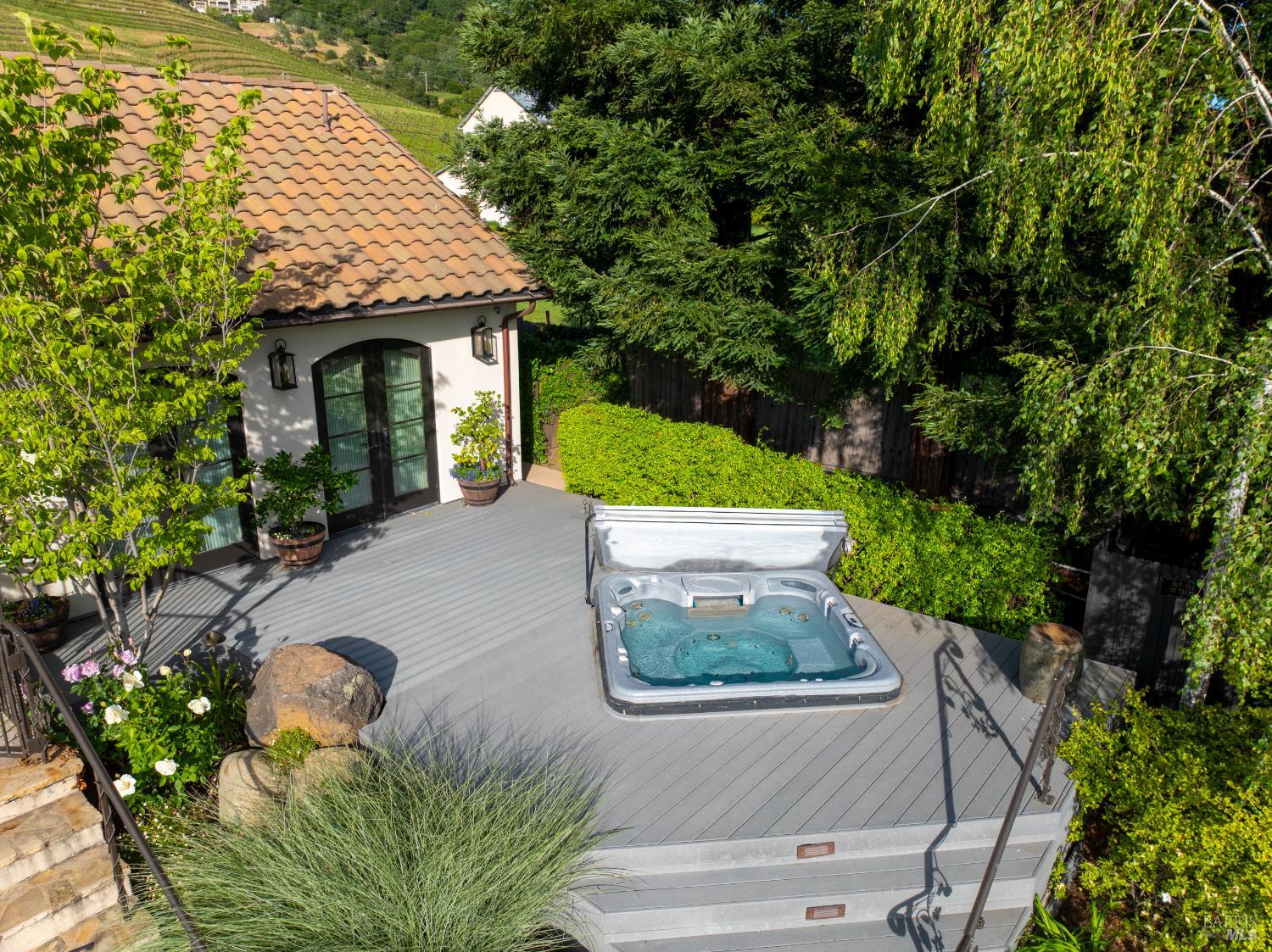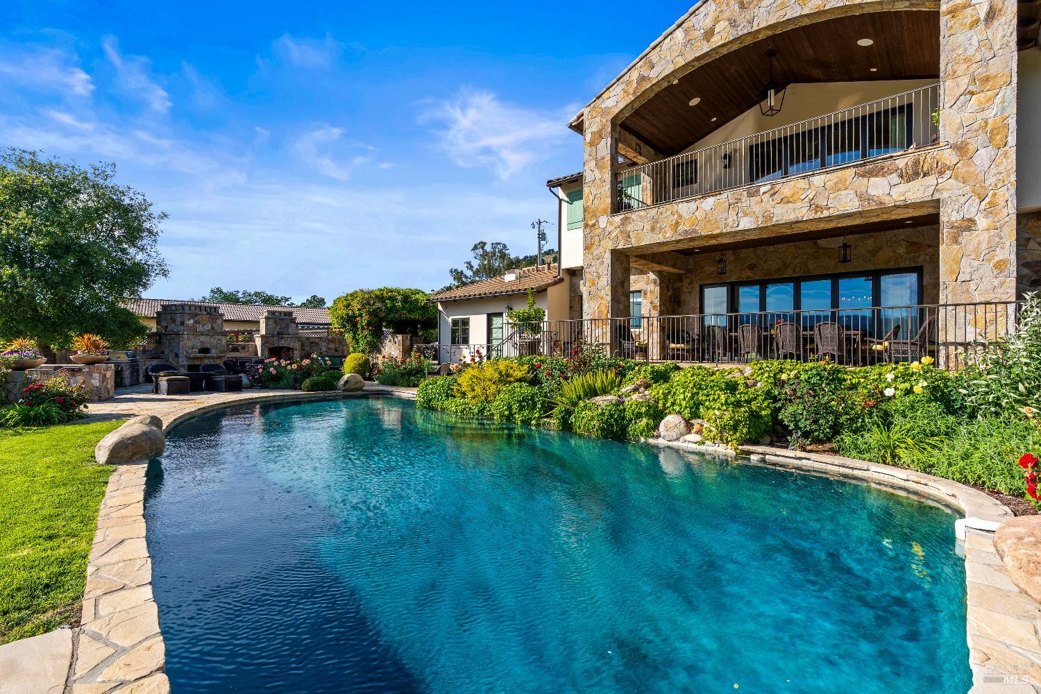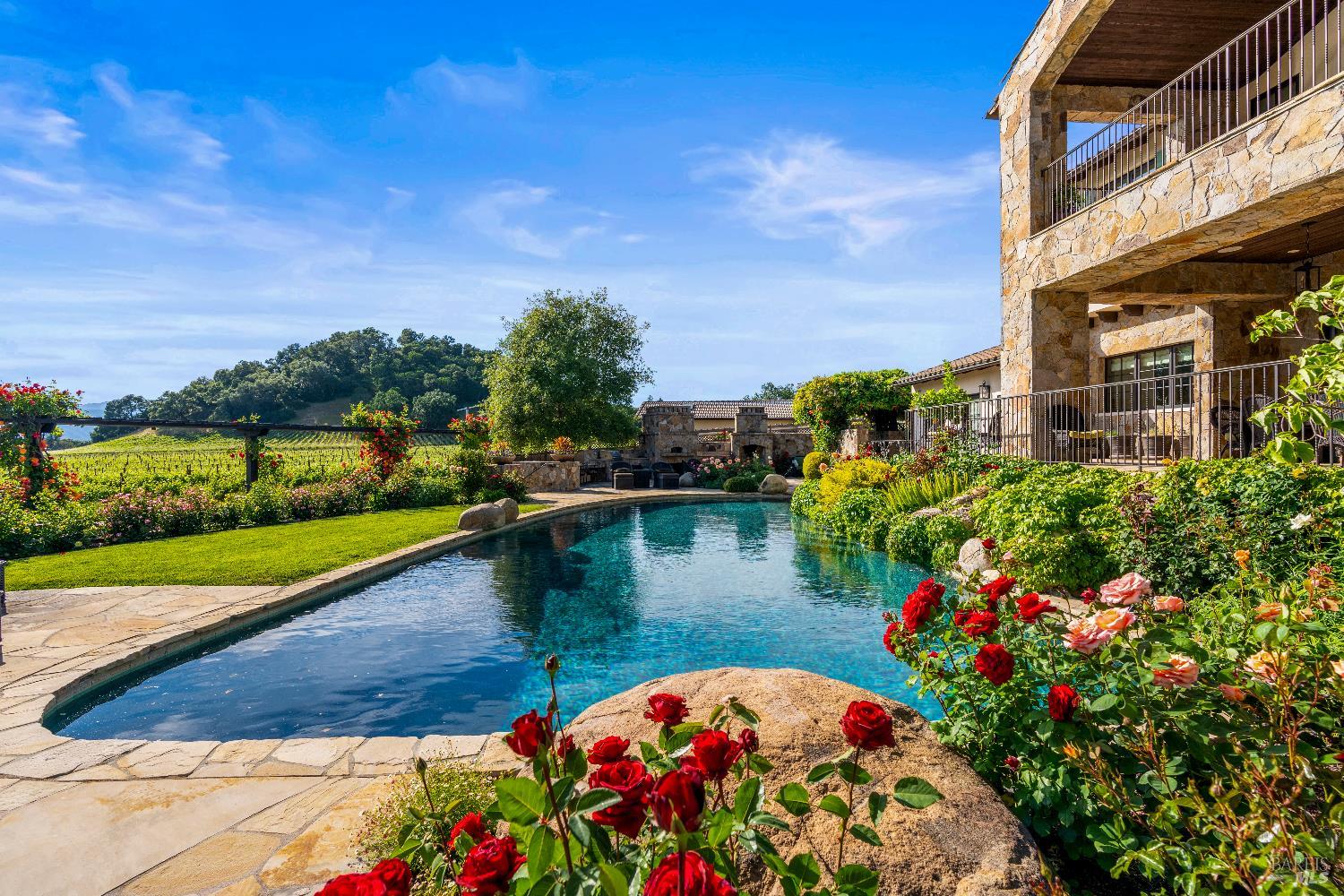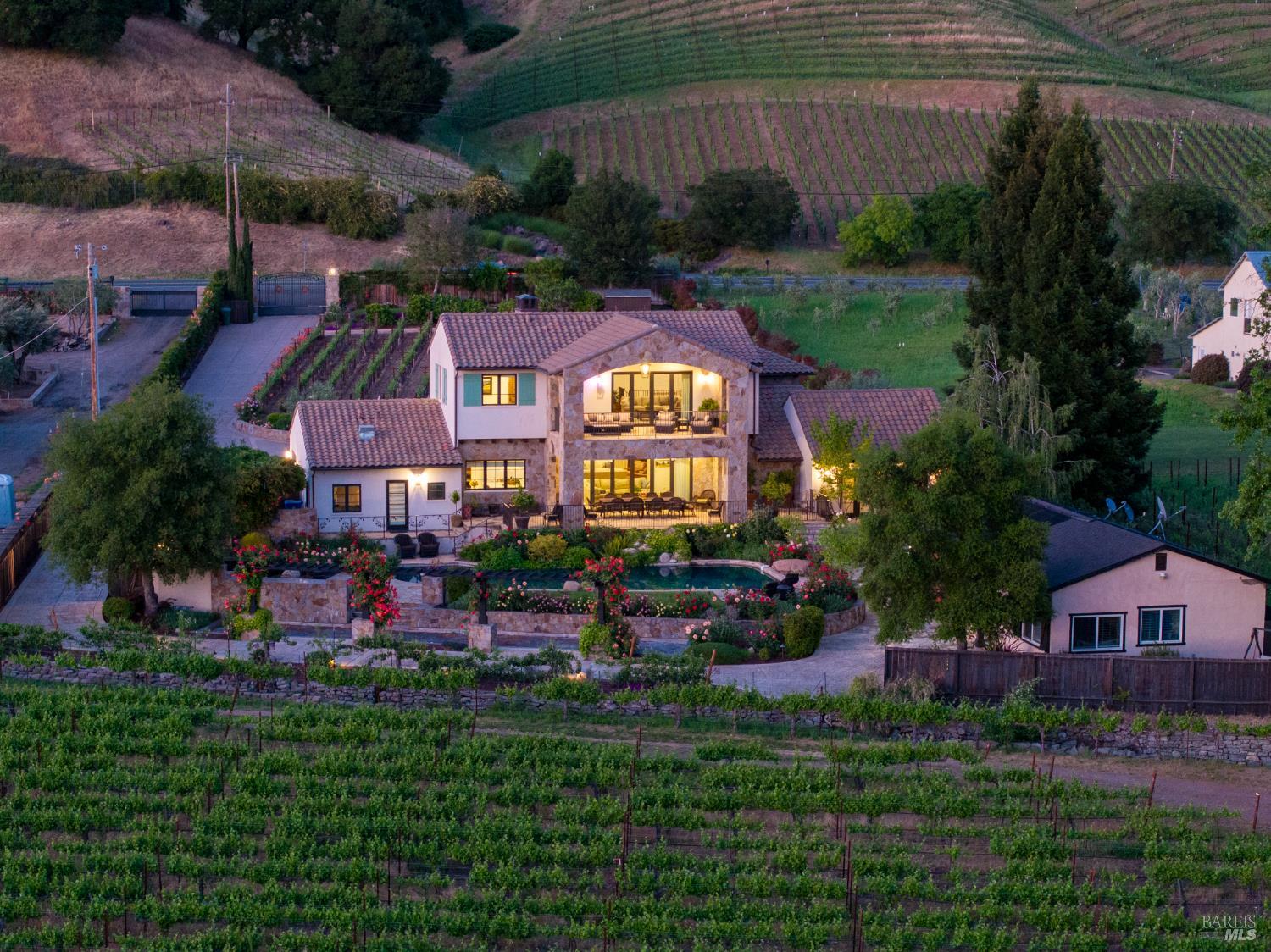 Set amidst the vineyards just outside the town of Yountville, this exceptional estate blends timeless architectural design with refined modern luxury. Built in 2018, the 2-story home offers 4 bedrooms & 4.5 baths, thoughtfully appointed with high-end finishes & artisan details. Rich wood floors, soaring ceilings, & expansive windows frame panoramic vineyard views, while multiple balconies invite seamless indoor-outdoor living. The main level features a luxurious primary suite with spa-like bath & private terrace, offering the ease of single-level living within a grander floorplan. At the heart of the home, a gourmet kitchen is outfitted with professional-grade appliances, custom cabinetry, & oversized island ideal for both entertaining & everyday living. A dedicated wine cellar & tasting area provide an enviable setting. Beyond the main home, a beautifully finished 1-bedroom, 1-bath guest cottage with full kitchen offers elegant accommodations for visitors. The property also boasts a resort-style pool, landscaped grounds, & Cabernet vines capturing the essence of Napa Valley living at its most luxurious. Just minutes from world-renowned dining and wineries, this extraordinary estate is a rare opportunity to own a private retreat in one of wine country's most coveted locations.Interested in this Listing?