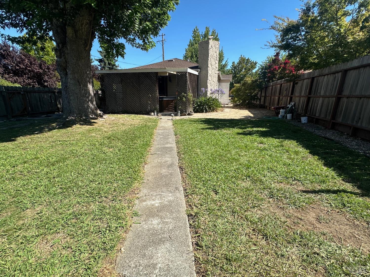Incredible North Napa Valley Opportunity! Spacious 1227sqft 2 bedroom 1 bath on a 10,215 sqft lot with RS-5 Zoning & Lot Split Potential! Located on corner lot with 2 separate accesses and up to 8 vehicle off-street parking with a fenced area. Centrally located 1.2 Miles from Downtown Napa. Rare Find - City water plus your own private well that produces 7gpm. Well Report available. Home features newer AC & central heating.Enclosed area for Washer & Dryer included, with 29 gallon water heater installed in 2024.Wood burning fireplace in living/family room area next to the kitchen and dining area can accommodate a large gathering, flooring is an upgraded Pergo floor. Front yard offers circular driveway for easy access for ingress and egress. Oversized 640 sqft 2 car detached garage with workshop has water and power. Enjoy your Napa nights in the hot tub under the private covered patio. Napa schools with Elementary 2 blocks away and nearby public park. There are numerous potential uses to fit your needs not available on other parcels. Verify all with City of Napa, We have. Now all we need is the buyer. the RS-5 zoning has options for improvements for increased living units, for either owner occupied or investmentInterested in this Listing?
