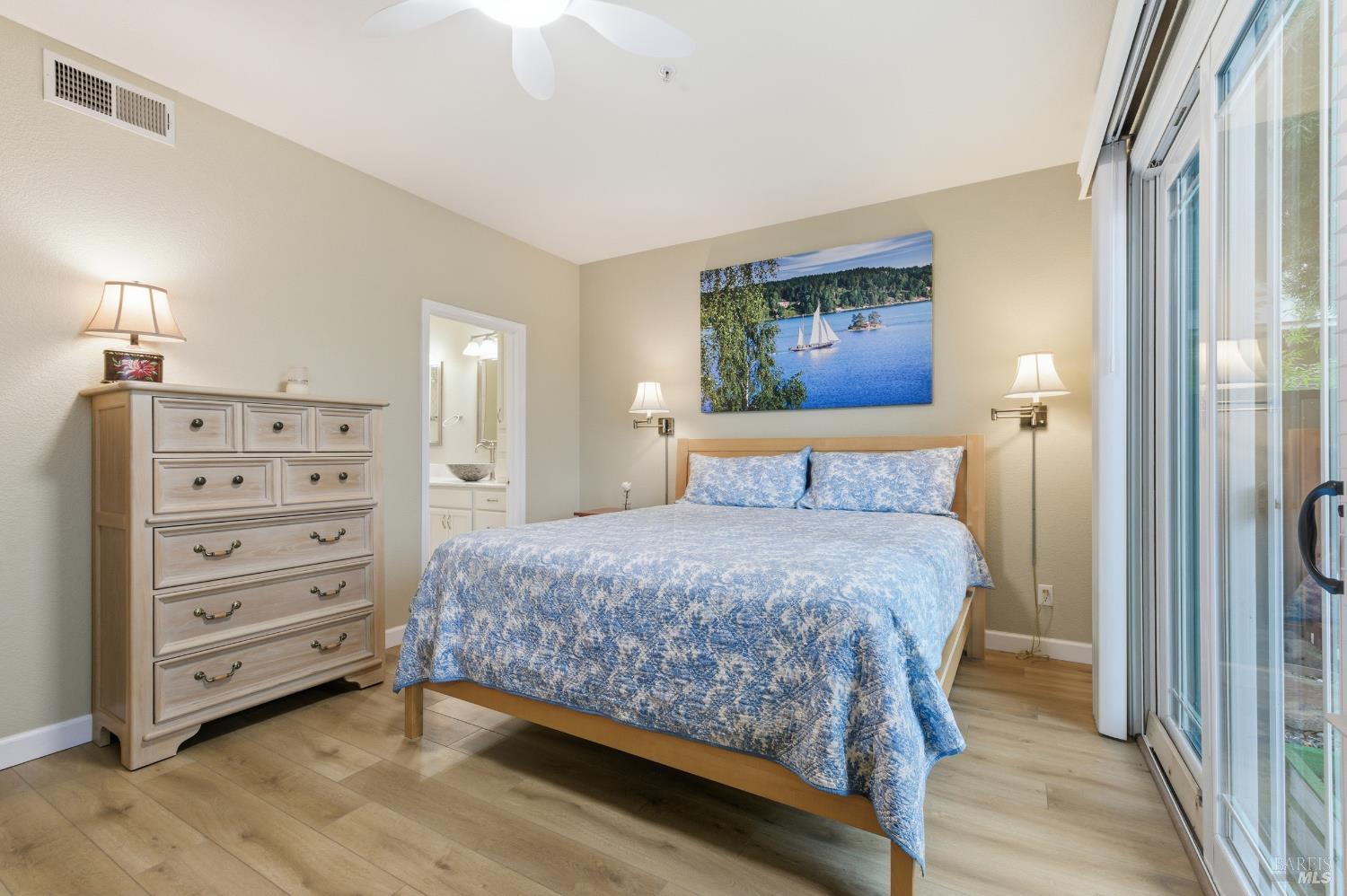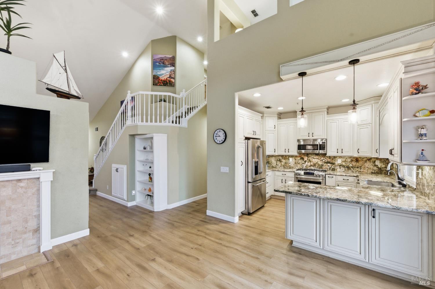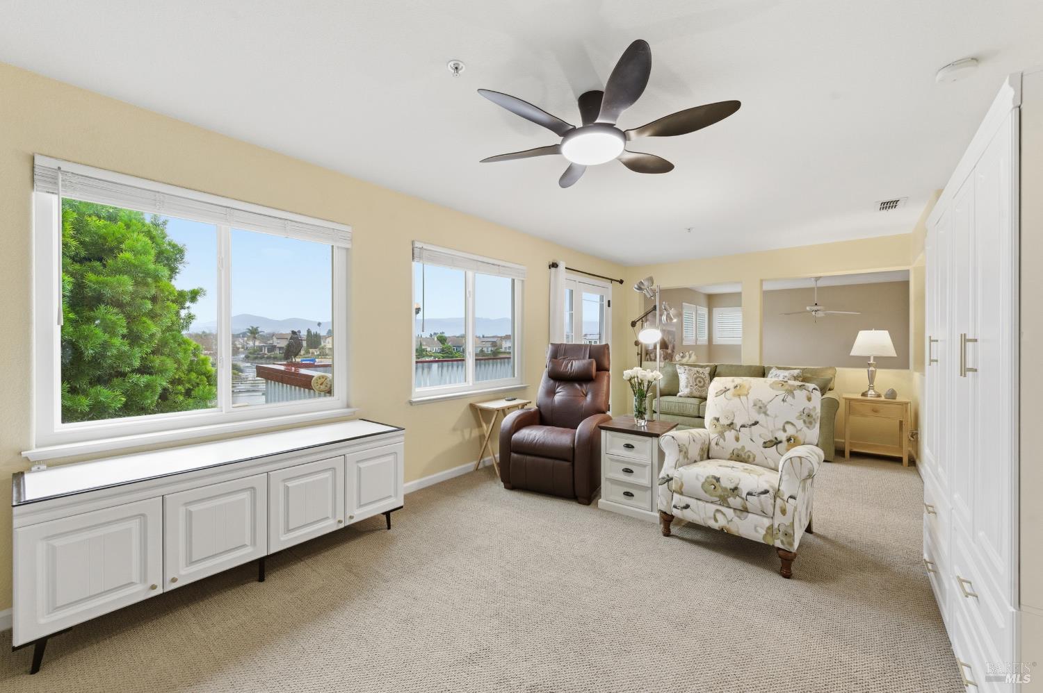 Embrace an elevated waterfront lifestyle in this thoughtfully updated home within the gated Napa Yacht Club community. This waterfront residence offers three well-appointed bedrooms, a large loft, two and a half bathrooms, owned solar, and a desirable 40-foot boat dock conveniently located in your backyard (shared with neighbor). Upgrades include new furnace, a/c, and dock in 2021, flooring in 2022, and new Simonton windows in 2023. The main-level primary suite serves as a peaceful retreat with calming water views, while the upper-level great room extends to a private deck overlooking the water, creating a stunning backdrop for everyday living and entertaining. Highlighted by vaulted cathedral ceilings, a warm fireplace, and updated kitchen and baths, this home delivers comfort, sophistication, and the unmistakable charm of Napa waterfront living.Interested in this Listing?