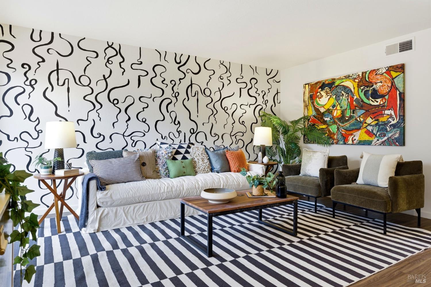 Move-in ready 3-bedroom, 1.5-bath end-unit condo with approximately 1,350 sq ft in North Napa. Interior features modern, stylish upgrades including a custom mural, wood panel accent in the powder room, colorful design details, fresh interior paint, new light fixtures, new LVP flooring in baths, and new carpet upstairs. Bright living room with wood-burning fireplace opens to a private enclosed patio. Updated kitchen with ample storage connects to dining area and second enclosed patio off the kitchen for added outdoor space and natural light. Upstairs offers three bedrooms with flexible layout options. Central heat, newer water heater, and interior laundry enhance comfort and efficiency. Includes two assigned covered parking spaces, abundant guest parking, and a private storage shed. Community amenities include pool, clubhouse, and open green space. Centrally located near Bel Aire Plaza shopping and dining, grocery stores, gyms, medical offices, and hospital services. Quick access to Highway 29 leading to Napa Valley vineyards, wineries, and regional destinations.Interested in this Listing?
