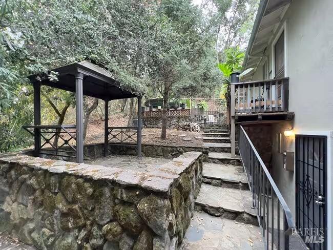 Rare triplex offers outdoor space. Unit 45 is a 2 bed/1 bath with electric range, fridge, carpet, and larger room has sliding door to private patio. The unit is above the attached one car garage with auto opener, laundry hookups and built in storage. Garage and laundry access is by stairs off kitchen. #45A is the studio that is on the ground level left side of building. #47 has 3 bedrooms, 1 1/2 baths -one bedroom with half bath is located on ground level next to the one car garage and laundry. This bedroom is accessed from stairs off kitchen. Both #45 and #47 have a living room, dining area off kitchen. On the both sides of building there are multiple terraced areas with patios and decks. The property located at the end of a court. City is currently replacing the sewer lines in the area using a city owned lot at the top of the court. When complete there will be a new street surface.Interested in this Listing?