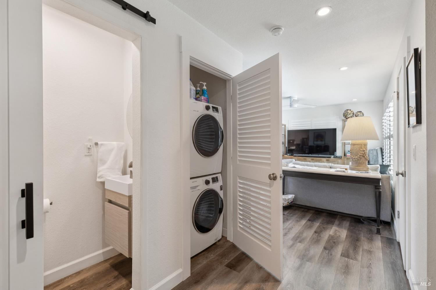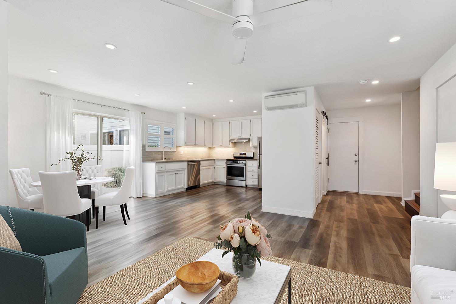 Rare opportunity in the heart of iconic Yountville to own two side-by-side, beautifully remodeled farmhouse style townhomes each offering 1016 sq ft, 2 BR 1.5 BA. Ideal for owner-occupant seeking additional income or smart investment opportunity in Yountville. Perfectly situated walking distance to world-renowned dining & wine tasting such Restoration Hardware, French Laundry & JCB Tasting Salon. Each unit features great room style living with family room opening to remodeled kitchen with stainless steel appliances & quartz countertops with decorative tile backsplash & dining area with sliding glass doors that open to private courtyard for easy outdoor living. 2 spacious BR with ceiling fans & full bath on upper level. Additional features include LVF flooring in all main living areas, louvered shutters & blinds, ductless heat & air, stackable washer/dryer, recessed & upgraded lighting. Each unit has dedicated outdoor parking space and share a 2-car garage. This turnkey property also offers easy access to the Vine Trail for cycling or walking, and is just steps from shopping, dining, and wine country experiences. Live in one, rent the other or invest in both. A truly unique opportunity in one of Napa Valley's most desirable communities.Interested in this Listing?