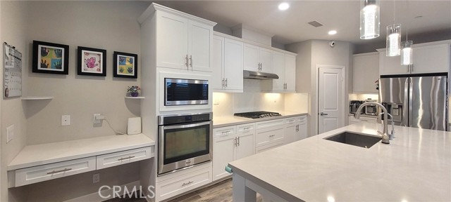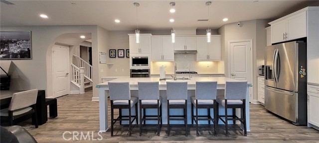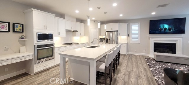 This stunning modern home in the Alston Community features an open floorplan with great room, dining room, and kitchen that open up through glass sliders to the California Room. The bright gourmet kitchen has Smart stainless steel appliances, white shaker-style cabinets, upgraded "Dolce Vita" quartz counters, a huge island with breakfast bar, and full custom tile back splash. The primary bedroom has a luxurious spa-like bathroom with dual vanities, "White-Ice" quartz counters, soaking tub and oversize framelass glass shower along with a spacious walk-in closet. All of the bedrooms are oversize and the large loft with barn door can be used as an office or occasional 5th bedroom. The large upstairs laundry includes high-end Samsung washer and dryer and a washing sink. There's a highly desirable downstairs bedroom and full bath with walk-in shower. Custom interior two-tone paint throughout. Tank-less water heater and home automation system - Elan system controller, smart-code entry deadbolt, 2 Honeywell programmable thermostats, 2 zone integrated light switches, and Ring door bell. Upgraded flooring including wood laminate, tiled bathrooms and laundry room, upgraded carpet in bedrooms. Garage has epoxy floors, included racks, cabinets, and Tesla EV charger. Backyard has been upgraded with landscaping, pavers, and bbq. Close to shopping, entertainment, medical centers, and highly rated Anaheim Hills schools. This elegant home is equipped with 20 solar panels for sustainable living and low energy costs, especially during summer. No Mello Roos, 1.1% tax rate, and lower cost City of Anaheim utilities.Interested in this Listing?