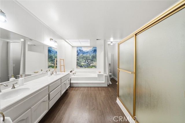 Welcome to this beautifully updated 3-bedroom, 3-bathroom home in the highly sought-after Windsor Terrace community of Anaheim Hills. With a fresh, modern feel and tons of natural light, this home is a true gem! This home will greet you with a beautiful, gated garden space, private and refreshing. The perfect touch to brighten the spirit after a long day. As you step inside, you ll immediately notice the newly updated flooring and fresh interior paint, giving the home a bright and airy atmosphere. The dining area is conveniently adorned with a wet bar and overhead storage cabinetry for glassware, mixers and bottles. The kitchen is a chef's dream, featuring elegant granite countertops, a dual oven for all your culinary needs, and a cozy dining nook perfect for enjoying casual meals. Adjacent to the kitchen is a separate laundry room for added convenience. The spacious living area is perfect for both relaxation and entertaining, while French doors open up to the beautifully landscaped backyard, offering seamless indoor-outdoor living. The main floor suite is generous in size with dual closet spaces leading to an open concept main suite bathroom. You will be met front and center to a luxurious and unique platform style tub. The true centerpiece of the space. Upstairs, you ll find two conveniently sized bedrooms, to include the 2nd main suite with an en-suite bathroom, providing plenty of space and privacy for the whole family. The additional two bathrooms are also well-appointed and offer great functionality. Outside, enjoy a private backyard with light landscaping, ideal for relaxing or hosting friendly gatherings. The community amenities are a major highlight, with a resort-style pool, spa, and tennis courts for you to enjoy at your leisure. Plus, there's a lovely park nearby, perfect for picnics, walks, and outdoor activities. This home also includes a two-car garage for ample storage and convenience. Don't miss out on the opportunity to own a stunning home in this prime Anaheim Hills location schedule a tour today! **ASK YOUR REALTOR FOR OUR UPDATES/FEATURES LIST LOCATED IN OUR SUPPLEMENTS SECTION**Interested in this Listing?