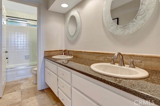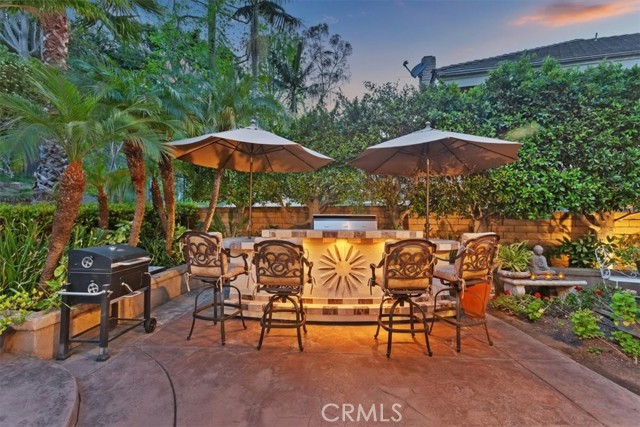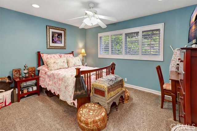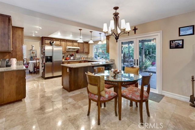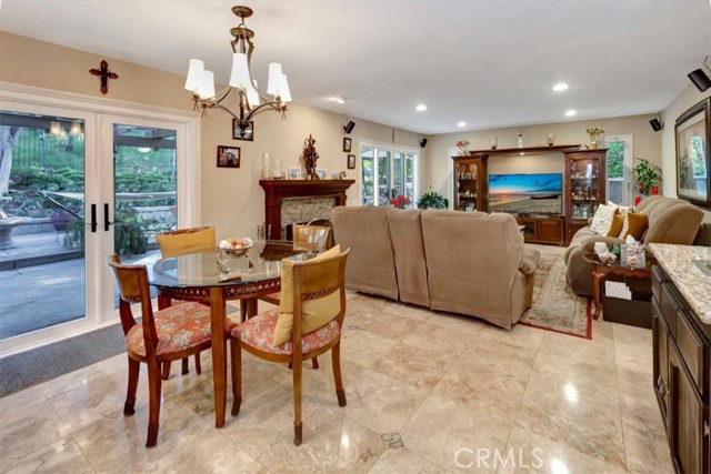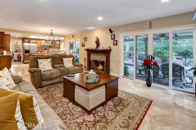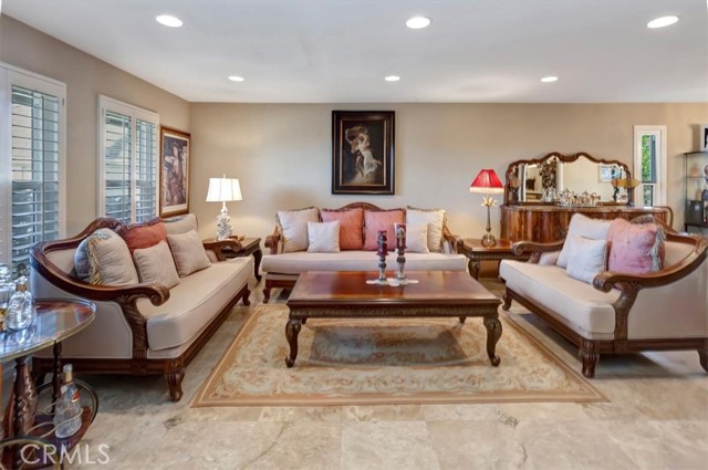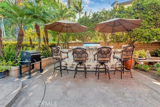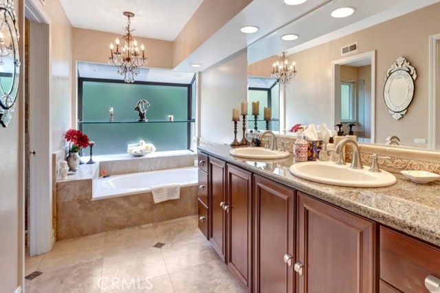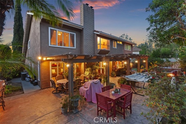 Nestled at the top of a quiet cul-de-sac in the beautiful Whispering Hills community is this stunning, highly upgraded 4 bedroom, 3 bath, 3-car garage home. Step through the beveled glass front door into a two-story foyer. Travertine marble floors with granite insets unite the first floor, including the step-down formal living room with dramatic mountain views and the formal dining room with views into the lush backyard. The kitchen offers beautiful granite counters, pendant lights, a pantry with built-in organizers, modern appliances, five burner stove, and garden window. The open concept kitchen flows seamlessly to an eating area with dual pane French doors to a covered patio and serene, private backyard. The family room, wired for surround sound with a granite-faced fireplace and wet bar with lighted glass cabinets, is the perfect setting for lively gatherings. The large primary suite with plantation shutters is your own private retreat with a beautiful granite-faced fireplace and walk-in closet. Adjoining primary bath has dual vanity with granite counters, travertine marble floors, bathtub and separate tiled shower. Hall guest bath also has travertine marble floors, dual vanity, and granite counters. Three other bedrooms offer ample closet spaces and combinations of high ceilings, shutters, and views of the backyard green belt and San Gabriel Mountains. Recessed lighting, dual pane windows throughout the home, and ceiling fans adorn all bedrooms. Relax and entertain in your very private, tranquil oasis with extra-large patio, heated pool and spa, fire & ice gas firepit, and professionally landscaped yard highlighted with programmable lighting. And the custom outdoor kitchen area is to die for! Its granite countertop, built-in lighting and sound system, Sapphire grill with separate gas burner, refrigerator, and sink will keep you cooking outdoors all year! The seven-camera security system and Chime Pro Flood Light in the backyard go way beyond common home security. Inside laundry with cabinets; 3 car garage with direct access, built in storage, and utility sink. This home is gorgeous, private, and secure the magic combination for the discriminating buyer!Interested in this Listing?