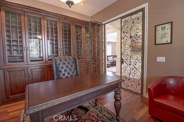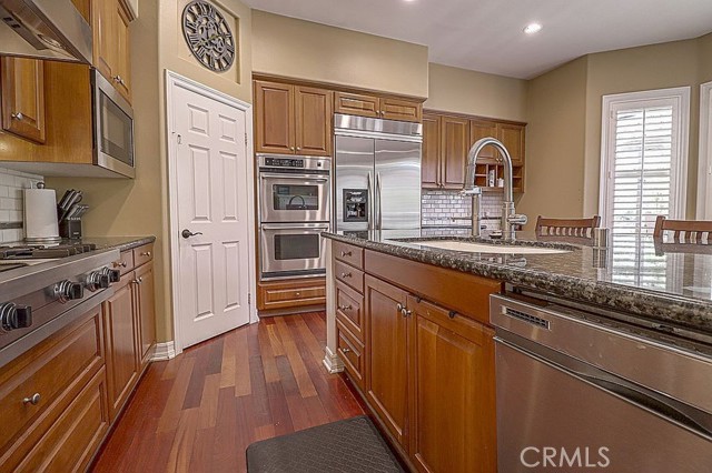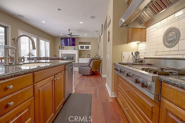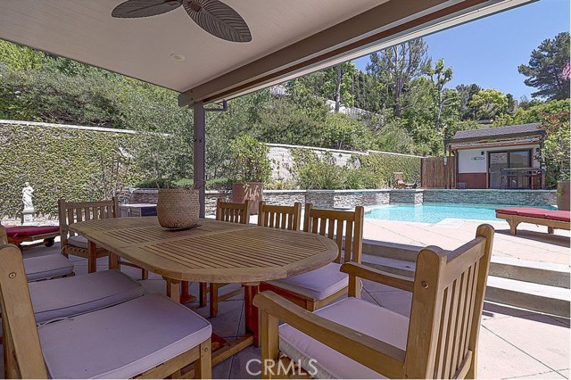 MUST SEE TRUE SINGLE STORY with flat backyard on private cul-de-sac and only seven homes. The builder built this one for himself and spared no expense. This entertaining paradise showcases raised planter boxes, outdoor heated pool all new equipment with soothing water feature, spa and lush green grassy area. Pergola's covering the built in BBQ with seating for 10 and another one covering the outdoor eating area. For a more intimate setting, a private side patio with wood fireplace is offered off the master side. RV Parking, oversized three car garage with cabinets, central vac, work bench and separate workshop with 220v. Room to build ADU at the rear of property instead of the single car garage/pool room with carport which has separate street entrance. Hardwood floors and shutters throughout. whole house air, plus new air conditioning and heating in 2022. Chef's quality kitchen features an abundance of cabinets, granite counter tops, walk-in pantry, SS appliances, dual oven and gas Viking cook top with island seating. Kitchen opens to cozy family room with fireplace, entertainment niche and offers great views of the stunning landscaped rear yard. Generous master bedroom with dual walk-in custom closets, fireplace and jetted soaking tub. Split from the master are Jack and Jill bedrooms each with their own sinks and a shared bathroom. The fourth bedroom has been converted to a wine room and there is a full bath off the hallway. The open formal dining and living room is bright and open with coffered ceiling, wainscoting and dry bar.Interested in this Listing?