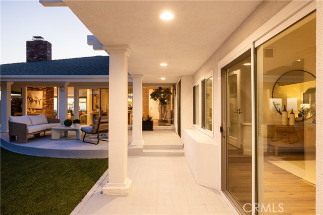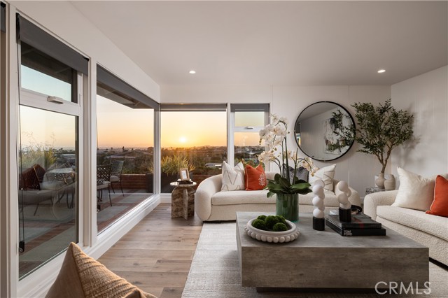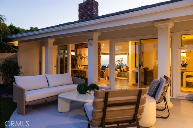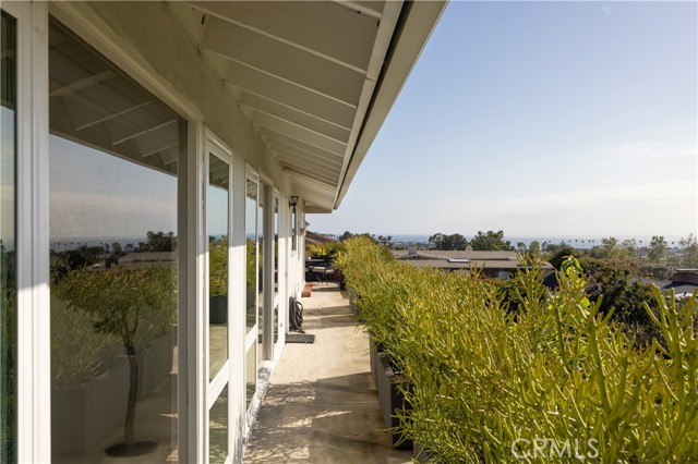 From the sparkling Pacific Ocean and romantic sunsets to dazzling city lights and Catalina Island, panoramic views enhance nearly every room of this impeccably maintained and carefully updated home in Corona del Mar s sought-after Harbor View Hills. Walls of floor-to-ceiling windows wrap the single-level residence in glass, bringing abundant natural light indoors and welcoming vistas overlooking Fashion Island s office towers, adjoining neighborhoods and Newport Harbor. The three-bedroom, two-bath design is approximately 2,474 square feet of free-flowing space. Offering magnificent ocean and city views, the living room opens to an intimate rear patio and features a classic brick fireplace, while the dining room offers access to the front yard and an ocean-view kitchen. White cabinetry and white countertops are complemented by a built-in pantry and upgraded stainless steel appliances, creating a functional and aesthetically pleasing space for mealtime preparation and entertaining. Both secondary bedrooms showcase ocean and evening-light views, and a generously sized family room displays a high ceiling with skylight, built-in cabinets and desks, and an adjacent laundry room with sink and ample storage cabinetry and shelving. Mid-Century style characterizes the large primary suite, which opens to the front patio and presents an interior French door to the family room, extensive mirrored closets, a period-perfect sunken tub, elegant floating vanity, and a shower with custom frameless-glass enclosure. Renovated in 2024, updates include a kitchen pass-through, Dutch door, refreshed landscaping, and upgraded showers with newer frameless doors. Additional improvements include new interior paint, new lighting, and a new epoxy floor in the two-car garage. Grounds measure nearly 7,128 square feet, allowing room for a circular driveway and an exceptionally private walled front yard with raised patio and low-maintenance turf. Harbor View Hills is directly across the street from Corona del Mar Plaza, beaches, and award-winning schools are minutes away.Interested in this Listing?
