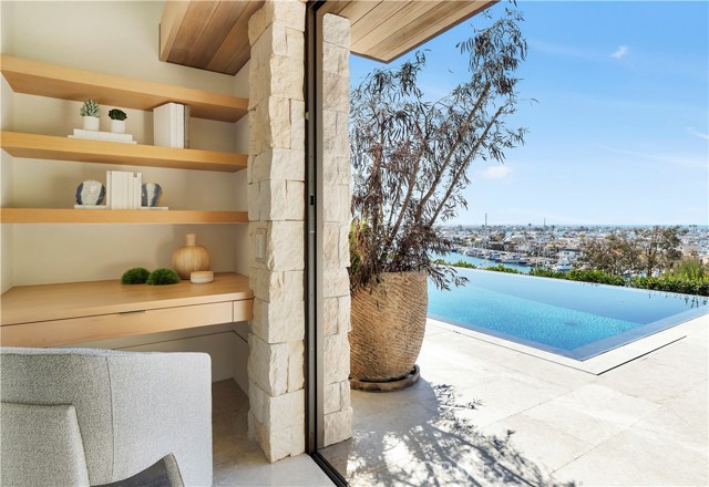 This unparalleled custom residence in the sought-after Newport Beach enclave of Irvine Terrace delivers the ultimate in contemporary luxury, offering front-row vistas of Newport Harbor, Balboa Island, the Pacific Ocean, and Catalina Island. The inspiring design reflects the talents of architect Carlton Graham, as well as builders Steve Davidson Construction and Tom Waters. Natural elements, reflecting the home s surroundings, are seamlessly incorporated throughout the two-level floorplan, which features four en suite bedrooms, a total of five full bathrooms, two half bathrooms, and approximately 6,232 square feet of living space. The main level is open and bright, with walls of floor-to-ceiling windows and fold-away glass doors framing panoramic vistas that come to life with passing yachts, sunsets of pure magic, and evening lights that dance across the water below. A great room with a fireplace and dining area, an island kitchen with premium appliances, white oak ceilings, and limestone floors and wall accents enhance the space. The luxe primary suite, located on the main level, is replete with a heated view deck that spans the width of the home, including a built-in BBQ bar. The lower level supplies a fabulous lounge and media room with a full wet bar, an office surrounded by glass doors, and a wine cellar with a full-size beverage refrigerator. Accordion doors lead to a terrace boasting an infinity-edge pool, raised spa, and an outdoor kitchen with a pro grill. Irvine Terrace is moments from Fashion Island s shopping and dining attractions, the Newport Beach Country Club, and the Newport Harbor Yacht ClubInterested in this Listing?