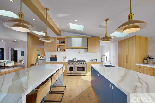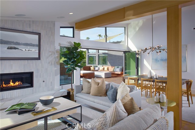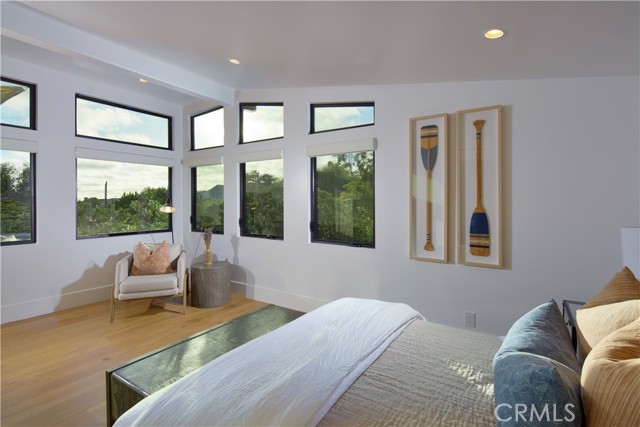 Located within the prestigious Cameo Shores enclave and featuring scenic creek and peek-a-boo ocean views, this magnificent Mid-Century Modern home maintains its original character while incorporating today s preferred design aesthetic. Reflecting an extensive 2020 remodel designed by Lindye Galloway with Principle Design & Construction as contractor, the home is warm, inviting and an ideal match for a wide variety of lifestyles. A custom glass-framed door provides passage to the extra-open and light-filled interior, which spans approximately 3,647 square feet on one impressive level. Four en suite bedrooms and four- and one-half baths offer their own unique style while providing comfort and privacy from main living areas. Vaulted open-beam ceilings, clerestory windows, and several sets of fold-away glass doors combine to infuse the home with an indoor/outdoor flow. Main public spaces include a living room warmed by a fireplace with floor-to-ceiling surround and a floating stone hearth, while the dining room opens to the outdoors. Anchored by two islands, one for prep and another for casual dining, the stunning kitchen shines with porcelain-slab countertops, waterfall edges, custom tile backsplash, custom contemporary cabinetry, a pass-thru to the patio for easy serving, a butler s pantry, and top-tier appliances from Sub-Zero, Wolf and Miele. On-trend design continues in the exclusive primary suite, where a book-matched stone fireplace wall, high ceiling, floor-to-ceiling windows, and a private bath with marble countertop, oversized shower and freestanding tub are on display. The casually upscale home also features wood and tile flooring, new Milgard windows and doors, designer accent tile throughout, quartz counters in secondary baths, and an attached three-car garage. High-tech systems include owned solar power, Nest thermostats, Luma security cameras, and Savant Home Automation. Terraced grounds extend almost .34 acres and reveal a pool and spa with waterfall and automatic cover, lifelike turf, and a dining patio for outstanding outdoor entertaining.Interested in this Listing?