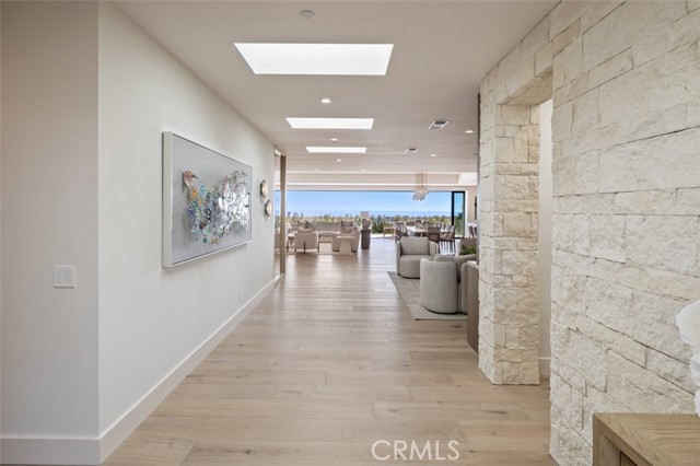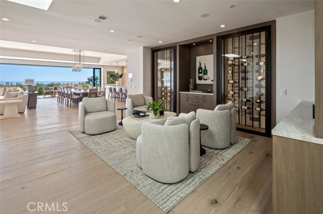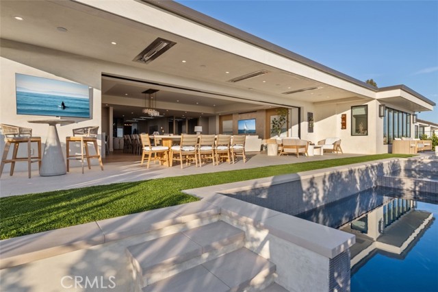 Set in Corona Del Mar s most prestigious oceanfront community, this brand-new single-level home in Cameo Shores captures the very essence of refined coastal living and high-end design. Conceived by architect Mark Teale, constructed by Nicholson Companies, and finished with the refined eye of Bliss Home Design, every detail of this warm contemporary residence reflects elevated craftsmanship and comfort. Upon arrival, one is welcomed by a calming water wall, a prelude to the natural flow and serenity showcased throughout the home. Enter through a grand wood pivot door into an airy layout highlighted by wide-plank white oak floors, custom natural stone finishes, and thoughtfully placed skylights that fill the home with soft natural light. Every corner invites an emotional connection, none more compelling than the expansive great room, which blurs the line between indoor and outdoor living with pocketing glass walls that frame priceless vistas of the Pacific Ocean and Catalina Island beyond. The main living space includes a sleek entertainment area featuring dual temperature-controlled wine walls and a bespoke bar, leading to a chef-caliber kitchen with Wolf and Sub-Zero appliances, Miele coffee system, and a striking two-toned island finished in Taj Mahal quartzite beneath custom ceramic pendants. Set around a stunning sculptural chandelier, the formal dining area is ready for elevated entertaining. Privacy and comfort define the home s four en-suite bedrooms, including a luxurious primary suite with a fireplace, wet bar, spa-like bath with dual walk-in shower, soaking tub, dual vanities, and a spacious walk-in closet. Additional highlights include a dedicated executive office, a versatile media room/den adorned in rich wood paneling, and a party prep room designed to support effortless entertaining, just off the three-car garage. Outside, a private oasis awaits with a custom pool and spa, outdoor kitchen with BBQ and wet bar, firepit, and a heated TV lounge area, all surrounded by lush curated landscaping and designed to take full advantage of the sunset views. Here in Cameo Shores, residents enjoy exclusive access to three private beach gates, a picturesque community park, and a world-class lifestyle just minutes from Crystal Cove, Fashion Island, and the dining and shopping of CDM Village. Much more than merely a residence, this property is an everyday retreat that brings together style, sophistication, and the serenity of coastal California living.Interested in this Listing?