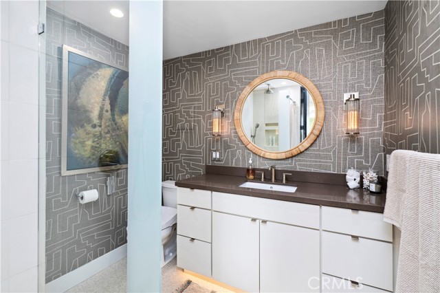 Located in the acclaimed community of Sandcastle, this single-level, end-unit showstopper has been thoroughly remodeled to the core. Featuring all new plumbing and electrical, the expanded one-bedroom layout offers versatile living with a flexible extended space that includes a custom Murphy bed ideal for guests or home office. Designed for peace and comfort, the home boasts extensive sound-deadening insulation in the walls and dropped ceilings, ensuring a quiet, serene environment. The showpiece kitchen supplies premier appliances, sprawling quartz counters, custom cabinetry, wine storage, walk-in pantry, and a center island with built-in seating that flows seamlessly into the adjacent formal dining area. Terrazzo flooring runs throughout, complemented by a sleek new fireplace insert and hidden laundry area for clean, minimalist living. The private rear yard is a tranquil escape, complete with a soothing water feature, lush landscaping, and a direct-access gate. Additional highlights include a guest bath, a spacious primary ensuite, an electric vehicle charger, 2 secured parking spaces, storage, and a host of modern conveniences. The association amenities include resort-style private pool, spa and barbecue area and the home comes with 2 dedicated parking spaces and a rare, deeded storage space.Interested in this Listing?