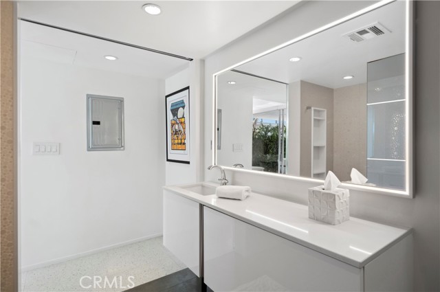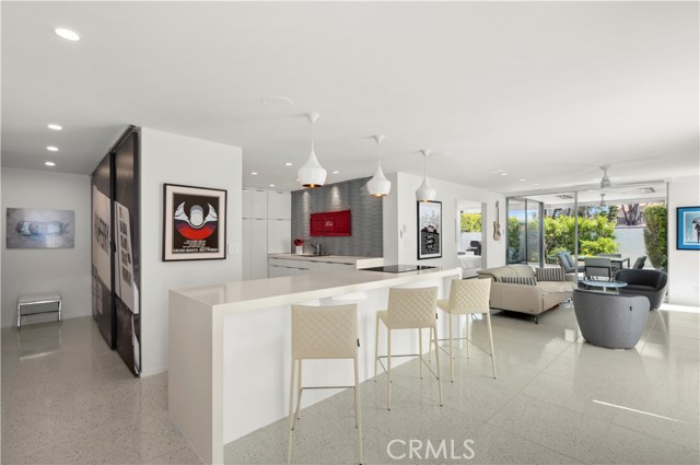 Established in the acclaimed community of Sandcastle, this single-level corner residence is a striking blend of mid-century inspiration and contemporary elegance. Enveloped in natural light from expansive glass walls, the one-bedroom, one-bath layout boasts thoughtfully curated design elements from iconic terrazzo floors to custom built-ins and a fireplace that anchors the sun-drenched living space. Sliding glass doors open to a generous, private backyard featuring a firepit, lush custom hardscaping, and a covered lounge area for year-round enjoyment. The kitchen provides impressive storage with organizational features, premier appliances, designer tilework, and an oversized kitchen island illuminated by statement lighting, providing a permanent dining room feature. The primary bedroom has loads of organic light with walls of glass, a spacious closet, and a beautifully appointed en-suite bath with floating vanity and glass-enclosed rain shower. An outdoor living loggia leads seamlessly to a serene backyard retreat. The Sandcastle amenities include resort-style private pool, spa and barbecue area and the home comes with 2 dedicated parking spaces in the gated garage.Interested in this Listing?