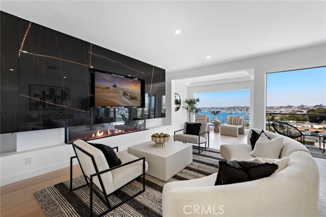 Stunning 2025 complete remodel with high-end luxury in mind. Indulge in awe-inspiring panoramic views of Newport Harbor, Catalina Island, city lights, and the California coastline. The contrast of the majestic white-water scenery against the coastal landscape creates a truly remarkable masterpiece that showcases the exceptional value and uniqueness of this home. Entering through a custom front door you re greeted with a downstairs private office / or extra guest 3rd bedroom as well as a dramatic glass staircase that leads you upstairs to a residence that is expertly designed for sophisticated entertaining, with a captivating view of Newport Harbor. No detail has been overlooked, the newly remodeled home includes a remodeled kitchen that highlights built-in beautiful custom oak cabinets, X-Tone countertops, backsplash, and breakfast bar center island, 6-burner Viking range/oven, top-of-the-line Sub-Zero refrigeration system, microwave drawer, dishwasher, and a walk-in pantry. Off of the kitchen is the beautiful dining area surrounded by a wall of windows and skylights allowing in lots of natural sunlight. The master suite includes a private balcony and boasts two spacious closets with one being a walk-in closet. The completely remodeled master bathroom offers dual sinks, custom lux cabinets, designer light fixtures, a soaking tub for ultimate relaxation, and an oversized shower inlayed with sleek Italian made tiles. The secondary bedroom includes a custom built-in closet with plenty of storage space and is located across from the secondary bathroom that includes custom Lux cabinets, modern light fixtures, and a glass enclosed shower with sleek modern tiles. The main showpiece in this incredible home is the family room that showcases a X-tone stone fireplace and entertainment wall, floor to ceiling glass windows with a captivating Harbor View as well as a private patio where you can sit and enjoy the morning sunrise and an evening sunset. Additional features include Prima Lusso hardwood floors throughout, all new LED lighting, inside laundry, designer light fixtures, custom doors throughout, built-in custom closet cabinets, new metal roof, new exterior remodel, new garage door, one car garage with spec flooring, and an additional driveway parking space. This property is the only residence on the street with a full backyard/patio with plenty of space including a fountain, fireplace, and BBQ area overlooking the bay.Interested in this Listing?