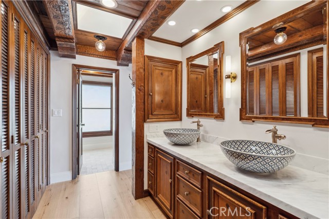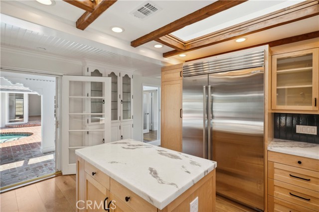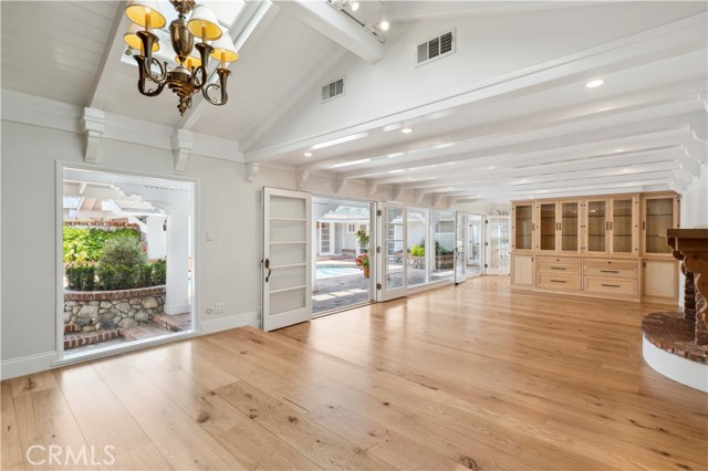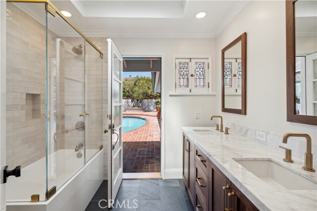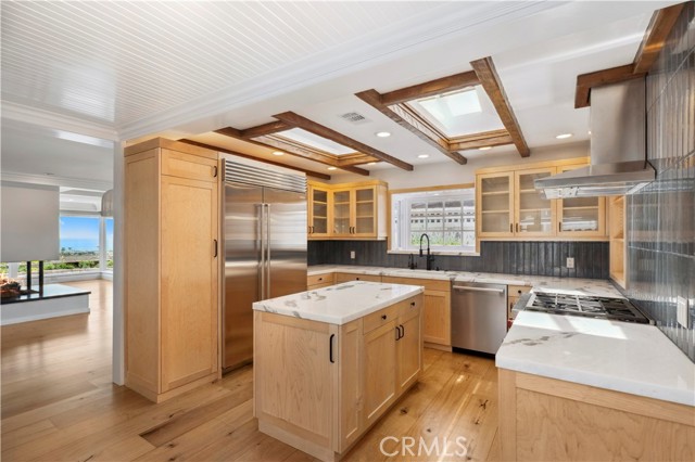 This thoroughly remodeled single-level home blends timeless craftsmanship with modern upgrades, set on an elevated lot offering unobstructed views of the Pacific Ocean, Catalina Island, and the coastline. Located just a half-mile walk from the heart of Corona del Mar village, the home has been reimagined with careful attention to detail preserving original architectural character while updating plumbing, electrical, fixtures, and finishes throughout. The 3-bedroom, 2 1/2-bathroom layout includes a gourmet kitchen with beamed ceilings and skylights provide custom maple cabinetry, artisan hardware, quartzite countertops, and premium appliances from Sub-Zero, Wolf, and Bosch. The living and dining rooms feature a dual-sided fireplace with a new granite hearth with walls of windows framing a picturesque view. The family room offers a second fireplace with hand-carved mantel and a custom-lit china cabinet, and built-in bookshelves. A private inner courtyard surrounds a private pool, original brick patio, and lush landscaping with automated irrigation. Salvaged brickwork carries through the driveway, garage, and planters. Outdoor lighting including LED security, landscape, sconces, and pool lights is fully automated. Additional features include a dedicated laundry room with granite sink surround and a hobby room equipped with a workbench, storage, and appliance-ready outlets. Enduring charm throughout this turnkey coastal retreat.Interested in this Listing?