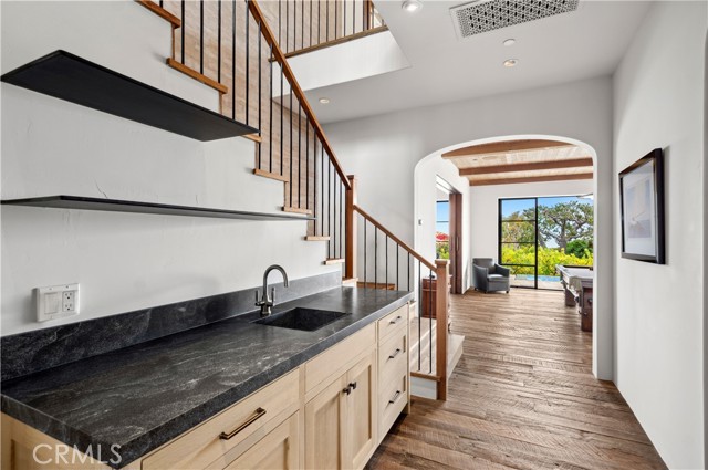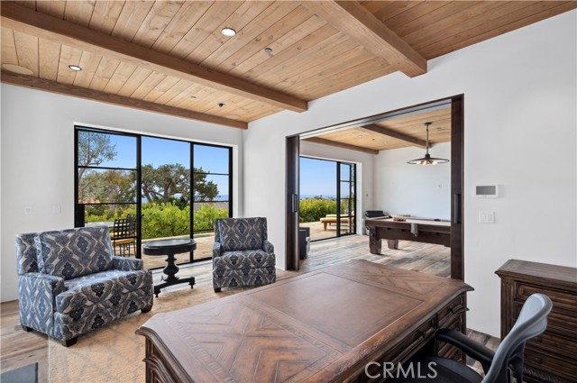 Atop the exclusive Corona Highlands community, this masterfully rebuilt coastal retreat showcases sweeping Catalina, ocean, and city views. Beyond a striking faade, the home offers four bedrooms (one currently utilized as a fitness room), a versatile game room, a library, and 4.5 baths. Refined interiors blend soaring beamed ceilings, stacked stone accents, and natural textures for a relaxed yet elevated aesthetic. Walls of glass frame panoramic vistas, while multiple private patios, a resort-style pool and spa, and a sun deck create a seamless indoor-outdoor lifestyle. The fully furnished residence features a living room anchored by a stacked masonry fireplace, a kitchen with a wood breakfast bar, honed counters, abundant cabinetry, dual ovens, a butler s pantry with prepping sink, and an adjacent private BBQ area. The home s amenities are thoughtfully designed for everyday luxury, including a private sauna, an individual laundry room with sink and extensive cabinetry, and an outdoor shower. A poolside entertainer s room with a full wet bar and pool table completes the ultimate coastal experience.Interested in this Listing?