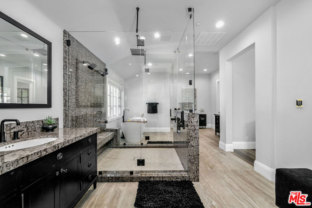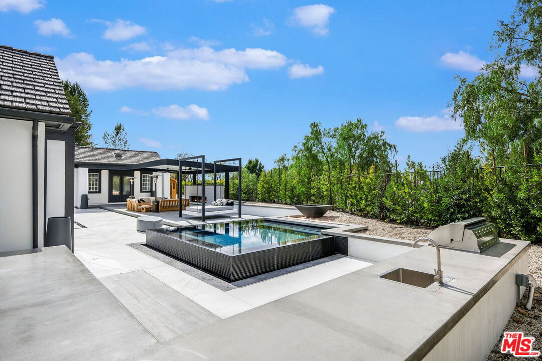 Nestled on a coveted corner lot spanning over an acre of flat land, 1 Falconridge is a masterfully remodeled compound estate that harmonizes modern sophistication with timeless design. Located in Coto de Caza's exclusive Weatherly enclave, this stunning single story home offers unmatched privacy, luxurious living, and exceptional spaces for entertaining. Spanning over 6,000 square feet, the residence features 5 bedrooms, 4.5 baths, and a private detached guest house perfect for extended family, guests, or staff. Every detail is designed to inspire, showcasing soaring ceilings, custom millwork, built-in cabinetry, and luxurious designer finishes, creating a seamless flow from room to room. The gourmet kitchen is a chef's dream, equipped with professional-grade appliances, an oversized side-by-side refrigerator/freezer, a gas range, double ovens, and beautiful stone countertops featuring a grand island perfect for hosting and everyday cooking. The open layout is accentuated by pocket doors and a striking two-sided fireplace, providing a sophisticated divide between the living and dining areas. The primary suite serves as a private sanctuary with an inviting sitting area and a spa-inspired bath. The bathroom is functional and breathtaking and has a sculptural soaking tub and a dual-head walk-in shower. The elegant finishes are reflected throughout the secondary bedrooms, each featuring custom walk-in showers, refined cabinetry, and a calm, cohesive color palette. The backyard has been transformed into an extraordinary outdoor retreat, ideal for relaxation and entertaining. It features a stunning, lavish heated pool complete with daybeds and spa areas, as well as a putting green for both aspiring and professional golfers. This space is further enhanced by expertly crafted landscaping that embodies a sophisticated and timeless aesthetic. A fully equipped outdoor kitchen is ideal for cooking, while multiple seating areas provide comfort and style. Custom fire features add warmth and create a cozy atmosphere for evening gatherings. Additionally, the covered patio offers a shaded area for lounging and dining, surrounded by carefully curated landscaping that enhances the overall beauty and depth of the space. Coto de Caza offers an exceptional lifestyle featuring equestrian trails, parks, hiking and biking paths, as well as access to the Coto de Caza Golf & Racquet Club. Conveniently located near fine dining, shopping, and highly-rated schools, this community is easily accessible from the 5 Freeway and 241 Toll Road. Additionally, it is just a short drive away from Southern California's beautiful beaches and Temecula's renowned wine country. Falconridge offers a unique chance to acquire an exceptional estate in one of Orange County's most desirable communities, allowing you to enjoy a life of elegance and serenity.