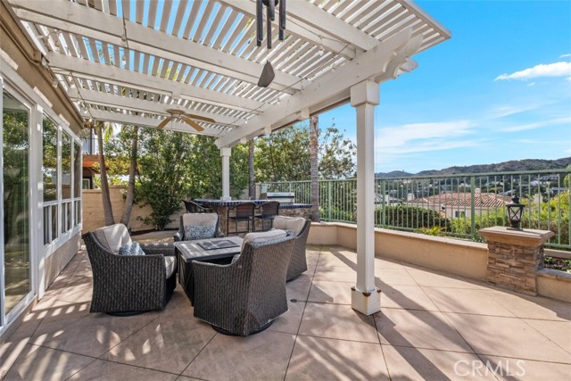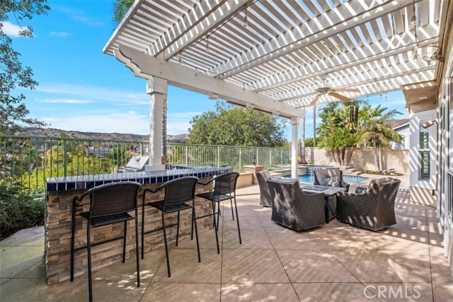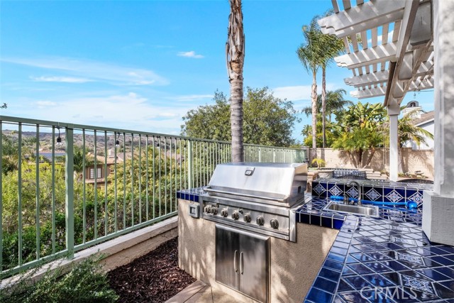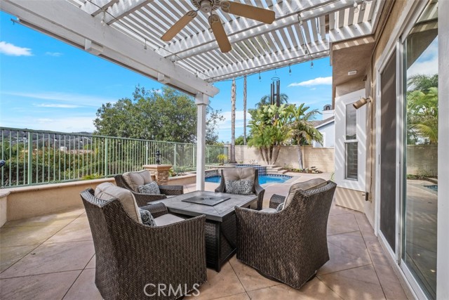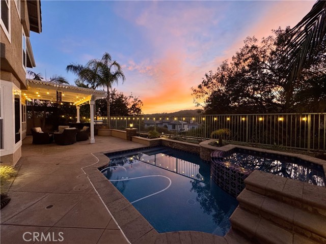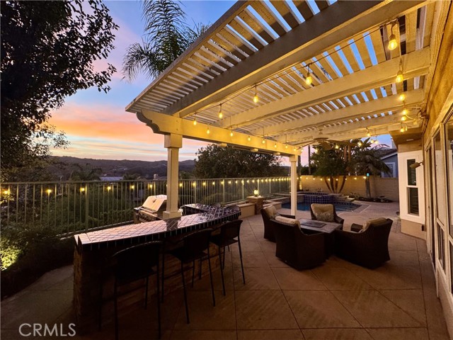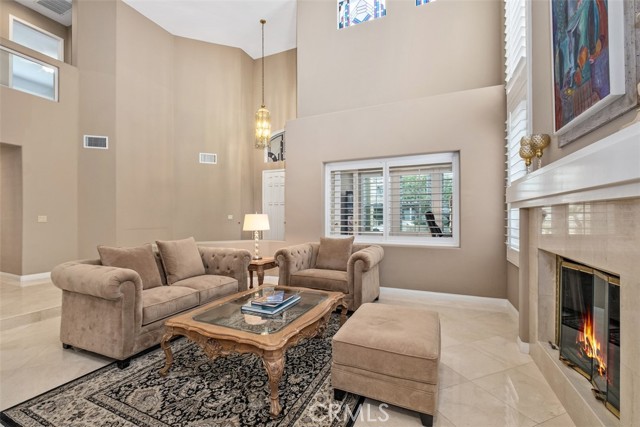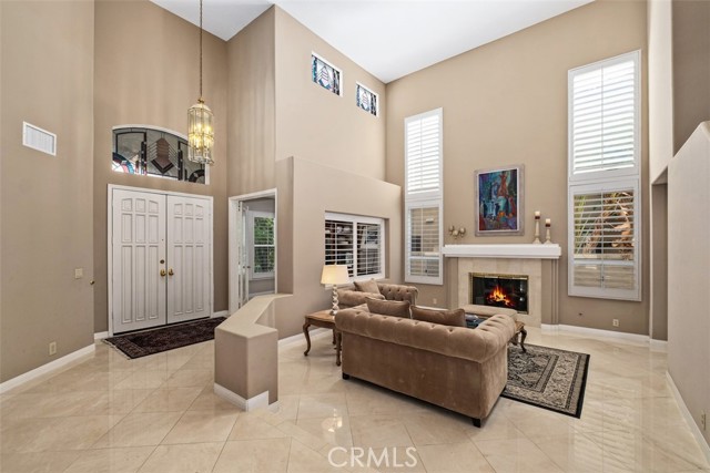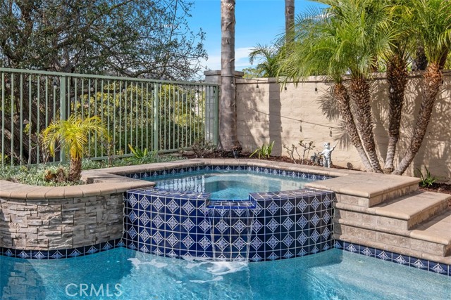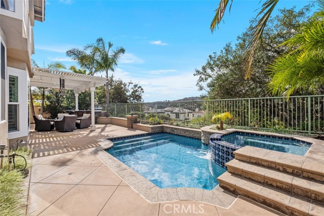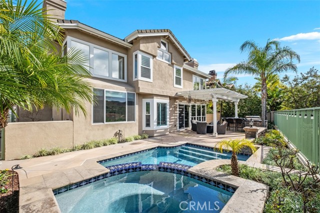 Welcome to this stunning 5 bed 4.5 bath pool home on the quiet side of a double cul-de-sac in the desirable Hillsboro neighborhood of Coto de Caza. Discover the luxury of living in the heart of this prestigious gated community, close to renowned schools, shops and restaurants, and the 241 & 5 freeways. This beautiful home is an entertainer's dream comprised of 3,781 sq ft of open concept living space and boasts 2-story vaulted ceilings, elegant 18" marble floors, custom plantation shutters, and art deco stained glass. Welcome your guests through the 2-story foyer into the spacious formal living and dining rooms. Gather your family in the newly remodeled kitchen and open den, featuring a large breakfast nook, center island, surround sound, mounted 74" TV, gas fireplace, plus a bonus bar space. Seamlessly migrate from the den through sliding glass doors to the private backyard oasis, featuring a covered seating area, salt water pool & spa, bar & gas BBQ, and sunset views galore. The yard boasts dozens of rose bushes, mature palm trees, and Italian cypress trees. Other 1st floor amenities include a powder room, bedroom & remodeled en-suite bathroom with walk-in shower, as well as a separate private office. Head upstairs, where the elegant marble floors transition to the warm, inviting look of environmentally sustainable bamboo wood floors. As you explore the 2nd story, discover the primary bedroom suite featuring a vaulted ceiling, fireplace, & retreat area perfectly suited as a sitting room or personal gym. The primary suite also features 2 closets (1 large walk-in), and a spacious bathroom with make-up vanity, large soaking tub, separate shower, and 2 sinks. Enjoy sunset views from over a dozen windows across the primary suite. Another master suite awaits at the other end of the hall, also featuring vaulted ceilings, 2 closets, an en-suite bath, and built-in window seat. Two more bedrooms await your family members, separated by a shared bath with 2 sinks and a tub/shower. In total, this home features 5 bedrooms (4 up & 1 down), a dedicated office, 4.5 baths, 3 gas fireplaces, laundry room, formal living/dining rooms, huge kitchen/den area, and a 3 car garage plus room for 3 cars on the driveway. The garage also features 2 Tesla chargers. Additionally, all piping has been replaced with PEX pipes and a whisper quiet whole-house fan is installed in the attic. Opportunities like this are rare. Now is the time to see your new home. We hope you love it!