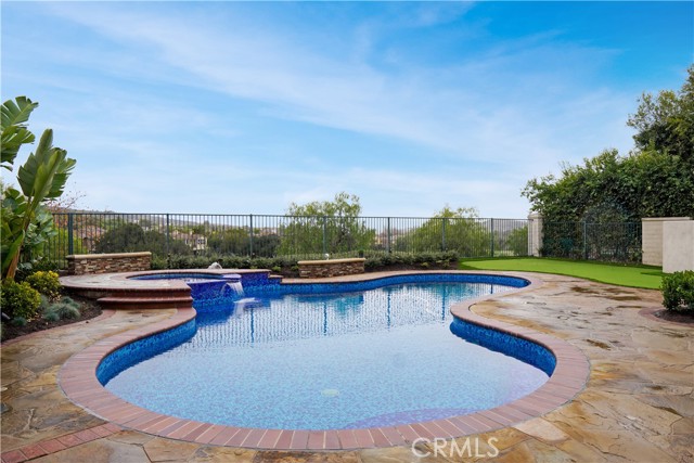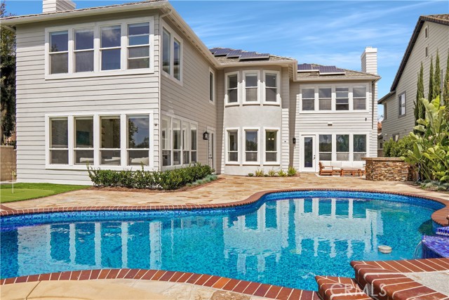 Discover where casual luxury meets sophistication in this stunning golf course pool home, perfectly situated on a cul-de-sac lot in the prestigious, guard-gated enclave of Coto de Caza. Offering breathtaking panoramic views of sunsets, mountains, and pristine fairways, this exquisite property redefines upscale living with a seamless blend of timeless elegance and modern comfort. Welcome home to 21 Portmarnoch in Southern Hills, a Masterpiece in Coto de Caza. Step inside, and you ll be captivated by soaring 20-foot rotunda windows that flood the home with natural light, accentuating its open-concept design. The heart of the home is a newly remodeled gourmet kitchen that boasts Sub-Zero and Wolf appliances, rich quartz countertops, an expansive center island, and an oversized walk-in pantry. This culinary haven effortlessly connects to the spacious family room and formal dining area, creating a vibrant space perfect for entertaining and everyday living. The thoughtfully designed layout offers four spacious bedrooms, including a convenient first-floor suite, and 4.5 elegantly appointed bathrooms. Upstairs, the luxurious primary suite serves as a true retreat, showcasing large windows that frame breathtaking golf course and mountain views. The spa-inspired bathroom is a sanctuary in itself, featuring a freestanding soaking tub, a separate step-in shower, dual vanities, and two walk-in closets. Secondary bedrooms, each with en-suite bathrooms, are adjacent to a generously sized bonus room, providing a versatile space for relaxation or indoor recreation. The outdoor living experience is nothing short of spectacular with outdoor dining, a deep blue sparkling pool and a turf putting green for some friendly competition. This home delivers an elevated lifestyle at every turn along with low maintenance so you can enjoy your weekends in the California sun. Truly smart and sustainable features include paid-off solar panels for energy efficiency, a remodeled upstairs laundry room that adds everyday elegance to your day, smart app lighting throughout, an air conditioned garage with customized flooring, cabinets, tankless hot water heater as well as a whole-house water filtration and softener system. Residents of Coto de Caza enjoy world-class amenities, including two championship golf courses, a private country club, racquet and pickleball courts, an equestrian center, and scenic trails, all within a community known for its award-winning schools.Interested in this Listing?
