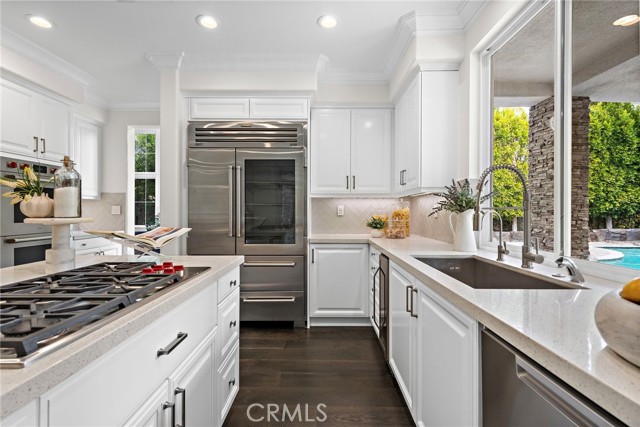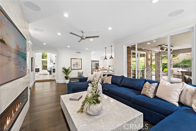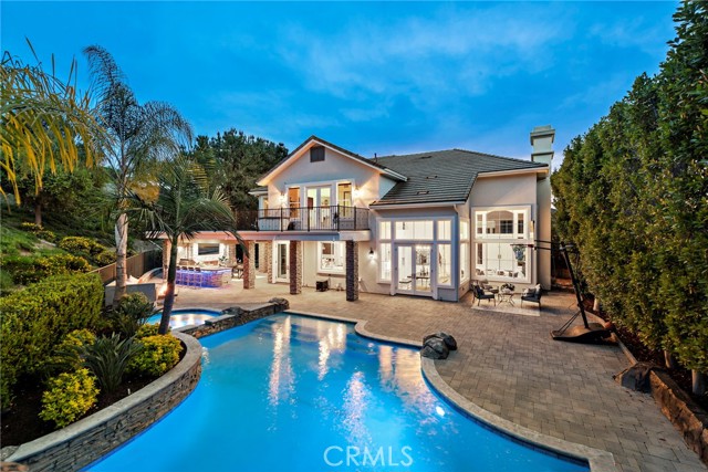 Experience the ultimate in luxury and privacy at 22 Van Gogh Way, a stunning pool home on a sprawling 0.87-acre lot in the prestigious gated community of Coto de Caza. This exquisite estate offers 5 bedrooms, 4.25 baths, and a 5-car garage, surrounded by breathtaking natural beauty with nothing but open space behind. Step inside to soaring two-story ceilings and walls of windows that flood the living and dining rooms with natural light. Wood flooring flows throughout, complemented by a travertine stone entry. The open-concept kitchen seamlessly connects to the family room and boasts a Sub-Zero refrigerator, Wolf stainless appliances, a double oven, a walk-in pantry, and a large island with a built-in cooktop. Two sets of French doors off the kitchen lead to the expanded California room, featuring a fireplace, full outdoor cooking area, TV, heater, and bar seating perfect for year-round entertaining. The family room showcases a custom marble wall with recessed fireplace, Smart TV, and designer lighting. A newly renovated powder room features a state-of-the-art toilet, leathered quartzite floating sink, and one-of-a-kind wall finishes and lighting. Downstairs includes a bedroom, currently used as a home office with an en-suite bath, plus a versatile second bedroom, currently used as an arcade room, which could also serve as a bedroom. Upstairs, the primary suite is a private retreat with a sitting area, spa-like bath with a soaking tub, walk-in shower, dual sinks with vanity, and a spacious walk-in closet. French doors lead to an expansive deck overlooking the resort-style backyard and hillside, where deer are often spotted. Upstairs features a wall of cabinets, providing ample storage for linens and more. Two additional upstairs bedrooms have en-suite baths, plus a large bonus room with a balcony, which could also serve as an oversized 6th bedroom. Outdoor living is unparalleled, with a huge swimming pool and slide, a second fireplace with built-in seating, putting green, and custom landscape lighting that brings the space to life, including custom color-changing LED lighting for both the pool and landscape. The 5-car garage features a car lift to expand parking, 2 Tesla charging units, built-in cabinets, epoxy flooring, and the entire space is temperature-controlled. Paid solar and newer variable-speed AC units enhance energy efficiency. Optional memberships available at the nearby Coto de Caza Golf and Racquet Club. *Be sure to watch the attached video!Interested in this Listing?