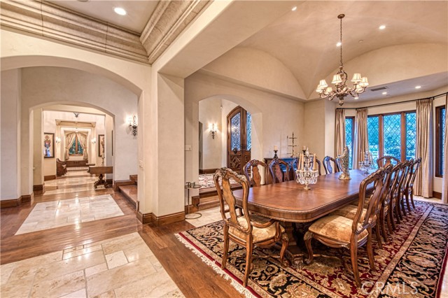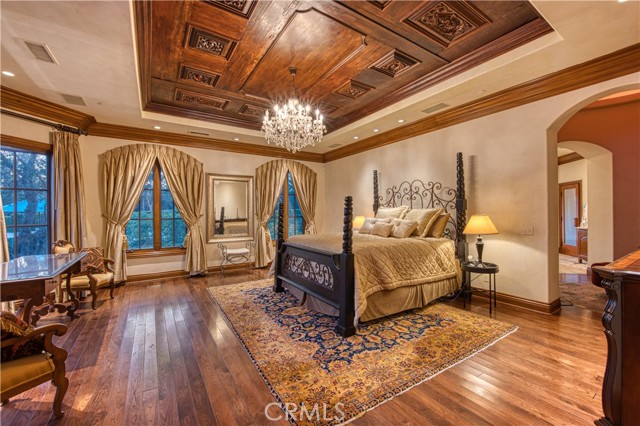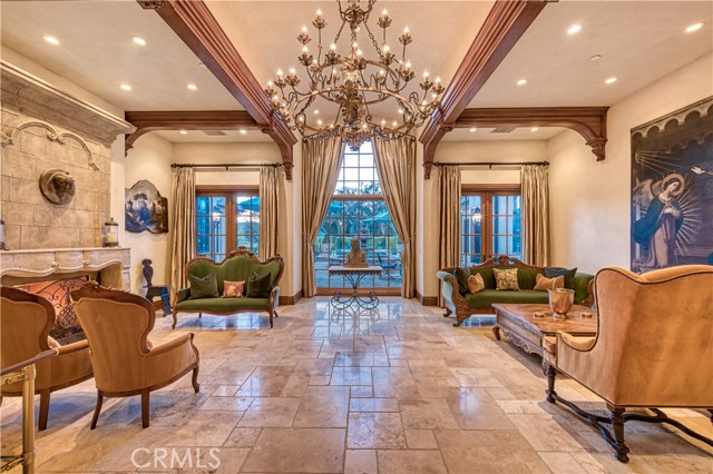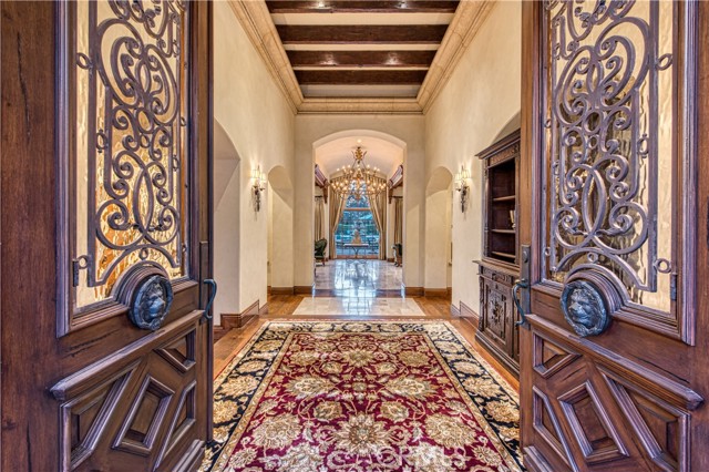 Welcome to 22931 Sonriente Trail, where unparalleled luxury and timeless elegance meet behind the gates of Coto de Caza, in the coveted Los Ranchos neighborhood. This extraordinary estate, mostly single-level, sits on a private 2-acre lot and exudes a sense of old-world European charm, with every detail meticulously crafted and no stone left unturned. Boasting approximately 10,000 square feet of opulent living space, this home offers five exquisite bedroom suites, 4 with built-in safe and expansive walk-in closet, ensuring both comfort and privacy. The chef s kitchen is a culinary masterpiece, featuring distinct cooking areas, a massive walk-in pantry, and a custom-designed kitchen island perfect for creating gourmet meals. Additional spaces include a refined den, a high-end executive office, an upstairs home theater, and a grand great room, where vaulted wood-beamed ceilings create a warm, inviting ambiance. As you enter, you re greeted by hand-carved wooden doors and a host of lavish finishes, including hand-carved travertine, intricate crown moldings, and a floor-to-ceiling stone fireplace in the family room. Stunning leaded glass accents and extensive woodwork add a touch of elegance throughout. The main-floor primary suite is nothing short of a sanctuary, offering a private retreat with a cozy fireplace, a steam shower, and a sauna. The entryway to the master bath is paved with stones imported from France, adding a rare and romantic touch to this haven of relaxation. A sweeping staircase leads to an intimate guest room retreat, as well as a soundproof home theater with a custom-painted sky ceiling, creating an atmosphere of luxury and privacy. Set against the backdrop of over two acres of lush, manicured grounds, this home is enveloped by breathtaking gardens, including an enchanting rose garden, making this estate a truly serene and picturesque retreat. 22931 Sonriente Trail isn t just a home it s a timeless masterpiece, offering an unparalleled living experience that combines the finest finishes, extraordinary craftsmanship, and an idyllic setting.Interested in this Listing?