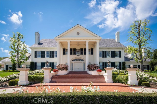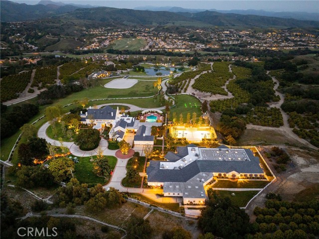 The Lyon Estate is a once-in-a-generation compound spanning 137 acres within Orange County's prestigious, private and gated community of Coto de Caza. Built in 1986 by US Air Force Reserve Commander and real estate magnate Major General William Lyon and his wife Willa Dean Lyon, this stately 21,000 sqft Georgian. The estate has welcomed many distinguished guests, including President Ronald Reagan and First Lady Nancy Reagan. This property commands breathtaking mountain views, balancing romantic, classical architecture with coastal California splendor. The Lyon Estate s 3 level main residence encompasses 8 bedrooms, 11 baths and boasts meticulous design details at every turn, from its coffered wood ceilings and intricate crown moldings, to its ornate light fixtures, and walls of windows that frame gorgeous views of the grounds and views beyond. The long list of world-class features and amenities includes a private helipad, comprehensive equestrian facilities with a 10 stall barn and riding arena, a championship tennis court, a brick-clad lower-level wine cellar, and a playhouse outfitted with electricity and a TV. Three additional onsite guest houses provide ample space for hosting. One includes 2 bedrooms, 1 bath and a full kitchen, while the other 2 offer a single bedroom and a kitchenette. Manicured grounds present enchanting Italian villa-like gardens and seating areas alongside a resort-style pool, spa and a standalone pool house, which is complete with a dry sauna and dual bathrooms, each featuring changing rooms. A remarkable 23,679 sqft car museum comfortably accommodates 70 vehicles with a professional auto shop, recessed turntable, and wash station. Additional onsite amenities include two lakes used for irrigation, a scenic pond, a greenhouse, and 41 acres comprising 4,500 Valencia and Navel Orange trees orchards, which took root more than 30 years ago. The Lyon Estate presents dual, equally exciting opportunities: An incomparable residence with its full complement of facilities and, on the southern end of the property an approved, 64 acre development for 25 homes in a new gated enclave. Experience privacy and serenity with convenient access to Coto de Caza's members-only amenities and 2 golf courses, while enjoying proximity to Laguna Beach, Newport Coast, and the best of Orange County coastal living amidst exceptionally curated beauty and turn the page in a storied legacy. The Lyon Estate awaits its next chapter and it's yours to write.