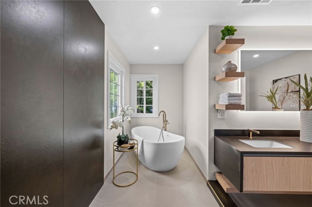 Welcome to this exquisitely renovated 4-bedroom, 4.5-bath residence in the coveted Village of Coto de Caza. This masterfully reimagined home showcases contemporary luxury living while maintaining the warmth and charm that defines this historic community. The home's striking curb appeal features new landscaping with professional lighting, a designer driveway with modern concrete panels, and thoughtfully placed ambient lighting that creates an enchanting approach. An expertly terraced backyard with custom stone retaining walls, hanging egg chairs, and strategic lighting creates multiple outdoor living spaces perfect for both relaxation and entertaining. Step inside to discover a complete transformation where no detail has been overlooked. The gourmet kitchen stands as the heart of the home, boasting custom floor-to-ceiling modern cabinetry in light neutral tones, premium stone countertops, and a sleek center island with waterfall edges. High-end stainless steel appliances, including a Caf built-in refrigerator, and designer pendant lighting complete this culinary haven, while open sight lines seamlessly connect to the dining and living areas. The primary suite offers a private sanctuary with vaulted ceilings and a private balcony. Its spa-inspired bathroom features a luxurious freestanding soaking tub, oversized glass shower, floating double vanity with designer lighting, and custom wood shelving with modern fixtures. The thoughtfully designed walk-in closets offer abundant storage with custom organization systems. No expense was spared in selecting premium finishes, from sophisticated brushed gold plumbing fixtures to high-end hardware and artfully curated lighting throughout. The attention to detail continues with new roof and windows, engineered hardwood flooring, custom millwork, and architectural details. Expansive French doors flood the interior with natural light while providing easy access to the outdoor living spaces. Located just minutes from the historic Old Coto Country Club and nestled in the picturesque rolling hills of Coto de Caza, this turnkey residence offers the perfect blend of luxury living and community charm. With designer touches and premium finishes too numerous to list, this stunning property is truly a must-see to appreciate the level of craftsmanship throughout. This is more than just a home; it's an opportunity to be part of a community where lasting memories are made and traditions are cherished.Interested in this Listing?