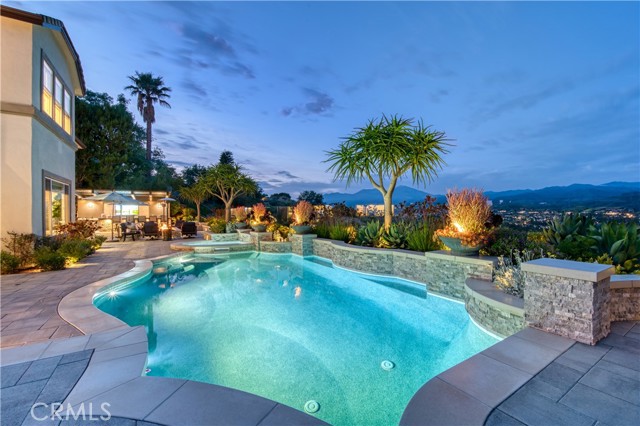 Discover luxury living in the highly-desired Pinnacle neighborhood of Coto de Caza. 32 Panorama showcases unparalleled panoramic views of Saddleback Mountain and the Coto de Caza Valley from almost every room in this beautiful estate. The backyard presents an entertainer's paradise, offering a completely redesigned front and backyard featuring a sparkling pool and spa, outdoor bar with custom cantilevered roof, massive architectural fire pit, surround sound, frameless glass fence for unobstructed views, extensive lighting, large lawn with room for a pickle ball court and stunning views. The completely remodeled interior showcases impeccable design at every turn. With 4 bedrooms including a main level guest suite, dedicated office, craft room (could be converted back to 5th bedroom), bonus room, and 4.5 baths, this spacious home is perfect for families and hosting guests alike. Opening up to the family room, the gourmet kitchen boasts high-end stainless steel Wolf appliances including a 6-burner stove, double oven, microwave + warming drawer, Subzero fridge/freezer, two Subzero wine refrigerators holding 254 bottles, ice maker, and an Asko dishwasher. The Primary Suite delivers a relaxing sanctuary with a fireplace retreat. The spa-like Primary bath showcases a luxurious Calcutta gold marble and crystal fixtures. You'll find a double sink vanity, walk-in shower and soaking tub, plus a large walk-in closet. Additional features include whole-house re-pipe, UV tinted windows, newer dual HVAC system and heating system, Sonos sound system, custom cabinetry, washer/dryer upstairs and downstairs, whole-house water softening system, and so much more! Experience the best of Coto de Caza, where premier living meets award-winning schools, a world-class Golf & Racquet Club, scenic sports parks, and easy access to hiking, biking, and equestrian trails. No Mello roos=low tax rate.Interested in this Listing?