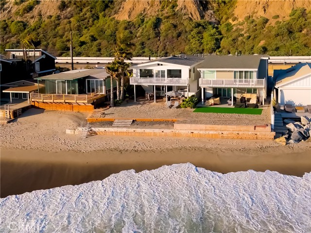 An extraordinary opportunity to own a true beachfront property in the exclusive guard-gated community of Beach Road one of the few enclaves in California offering a private beach. This 4-bedroom, 4-bath home sits directly on the sand with panoramic ocean views from the main living areas on both levels. A rare original seawall protects a wide sandy beach directly in front of the property, paired with an expansive patio together creating the epitome of outdoor coastal living that few homes on Beach Road can rival. Thoughtfully designed for turn-key enjoyment, the home features Carrara marble waterfall countertops, Miele and Bosch appliances, teak and shiplap accents, and seamless indoor-outdoor flow. The open kitchen, dining, and living areas extend to a generous beachfront patio perfect for hosting, lounging, or simply soaking in the views. Upstairs, a spacious great room opens to a private balcony, while the rooftop deck, framed by a Mediterranean garden, offers yet another serene setting for entertaining or unwinding. Two bedrooms feature ensuite baths, with two bedrooms located on each level. Select bathrooms retain beautifully preserved vintage 1950s tile, adding character and charm. Recent upgrades include new air conditioning and a fully updated electrical system. The property also includes two single-car garages and two additional parking spaces on the railroad side of the road. This home holds an active short-term rental (STR) permit, and a new owner may apply to continue use as a STR investment property (subject to city approval). Furnishings are negotiable. This is a rare opportunity to own a thoughtfully upgraded beachfront home in one of Southern California s only private beach communities offering unmatched outdoor space, protected sand frontage, and an unbeatable oceanfront lifestyle.Interested in this Listing?