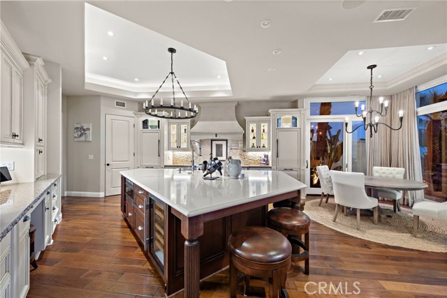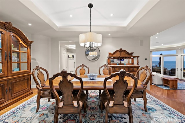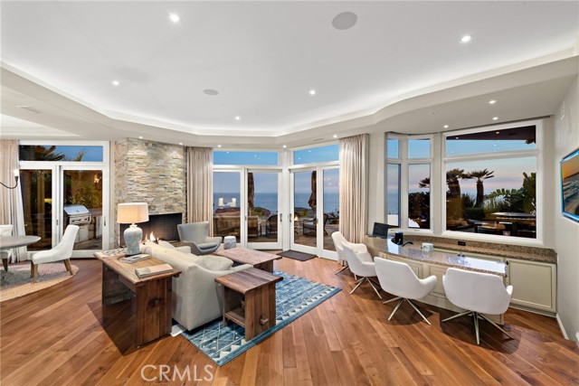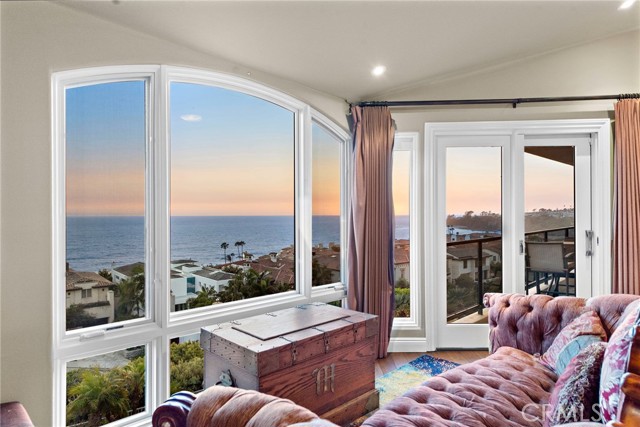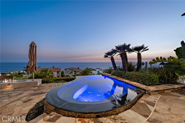 Presenting one of the finest custom residences with breathtaking ocean, Catalina, and white-water views, located within the exclusive oceanfront, 24-hour guard-gated community of Ritz Cove, offering direct beach access. This distinguished home features 4 bedrooms, 5 baths, formal living and dining areas, a separate office, and an additional loft/lounge area with a fireplace and an ocean-view deck. Indulge in the luxury of an in-home theater with sound walls, electric draperies, and surround sound, as well as an exercise area complete with a television, coffee bar, and multiple refrigerator drawers. The primary suite boasts a seating area, an outside deck with white-water views, a custom shower, a custom walk-in closet, and a center island with a built-in pop-up television. The gourmet kitchen is a chef's dream, featuring a stunning center island, desk area, breakfast nook, 6-burner Wolf range, two dishwashers, wine cooler, microwave, and separate refrigerators and freezers (both upright and with drawers). The home is adorned with custom tile work, granite counters, ceiling fans throughout, LED lighting, custom built-ins and cabinetry, hardwood floors, skylights, a wet bar, electric draperies, and an inside laundry room. The exterior landscaping is equally impressive, with an infinity-edge spool, electric awning, custom umbrellas, a barbecue area with a built-in refrigerator and pop-up TV, and two 10-foot linear fire pits. The 5-car garage includes a workbench area, high ceilings suitable for lifts, abundant storage, and custom floor matting. In addition to the home's exquisite features, residents of Ritz Cove enjoy the premier amenities of Dana Point, including world-class beaches, the renowned Dana Point Harbor, and a variety of fine dining and shopping options. The area also offers exceptional recreational opportunities such as boating, fishing, golfing, and scenic hiking trails. Truly a must-see for those seeking unparalleled elegance, luxury, and the quintessential Southern California lifestyle.Interested in this Listing?