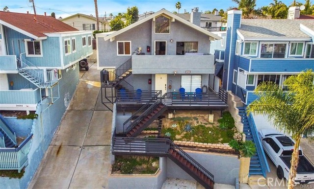 Super duplex opportunity in the heart of Lantern Village, Dana Point! This property features a 3-bedroom, 2-bathroom upper unit all on one level, and a 2-bedroom, 2-bathroom lower unit, also all on one level. Both units have fireplaces in the living rooms and ceiling fans. The upper unit includes vaulted ceilings and a peek-a-boo ocean view from the deck. The 3-bedroom unit comes with a 2-car garage, and the 2-bedroom unit has a single-car garage. Both garage doors have been replaced and include remote openers. Each unit has inside laundry hook-ups. Major upgrades were completed in December 2020, including new windows, decking, roof, exterior paint, and gutters. Located close to Downtown Dana Point, shopping, restaurants, parks, the harbor, beaches, and the ocean. Also convenient to public transportation, freeway access, and the train station. The upper unit tenant is vacating after 14 years, and the current rent is significantly below market value - presenting an opportunity to secure a new market-rate tenant or occupy the unit as an owner. The lower unit is occupied by a long-term, reliable, and very friendly tenant who is also below market rent. Potential to add two ADUs above the existing garage without extensive city approvals (buyer to verify with the City).Interested in this Listing?