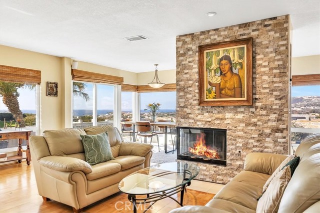Available January, February, March 2026, this fully furnished coastal sanctuary offers breathtaking ocean and Catalina Island views, seamlessly blending sophistication and comfort. The journey begins with a private courtyard accessed directly from the driveway. This serene space, complete with bistro seating, provides a tranquil spot to bask in the morning sunlight. Step through the front door into a refined living room, centered around a warm fireplace. Expansive sliding glass doors frame mesmerizing vistas of the Pacific Ocean and the Southern California coastline, creating a picture-perfect backdrop. The adjacent kitchen is thoughtfully designed with a gas range, microwave, dishwasher, and refrigerator, ensuring every culinary need is met. A convenient laundry area is located just beyond the kitchen for added ease. The dining room, featuring a large table positioned by panoramic windows, is an ideal setting for savoring meals while taking in the stunning views. Sliding doors from the dining and living area lead to a stone patio in the backyard. This outdoor oasis boasts a dining area perfect for enjoying alfresco meals or evening cocktails under the warm Southern California skies and a barbecue station for entertaining. Inside, a cozy den off the dining room provides a secluded retreat with a plush couch, ideal for relaxing with a book or watching TV. Adjacent to the den is one of two full bathrooms, featuring double sinks and a walk-in shower. Down the hallway lies the secondary bathroom with a tub and shower combination, along with two well-appointed bedrooms one with charming courtyard views and the other conveniently located just across the hall. Ascend the staircase near the front door to discover the expansive master suite. This private haven boasts soaring ceilings, unparalleled ocean views, a spacious walk-in closet, and an ensuite bathroom designed with luxury in mind. Beyond the comforts of this exquisite home, the Niguel Shores community offers an array of resort-style amenities, including pickleball and tennis courts, a pool and spa, and a scenic bluff overlooking The Strand Beach. Just minutes away, the vibrant town of Dana Point awaits, with its harbor, Lantern District, upscale shopping, and fine dining options. Nearby, iconic destinations like Salt Creek Beach, The Strand, and world-class resorts including the Ritz-Carlton and Waldorf Astoria promise unforgettable experiences. **Available January, February, March 2026***Interested in this Listing?