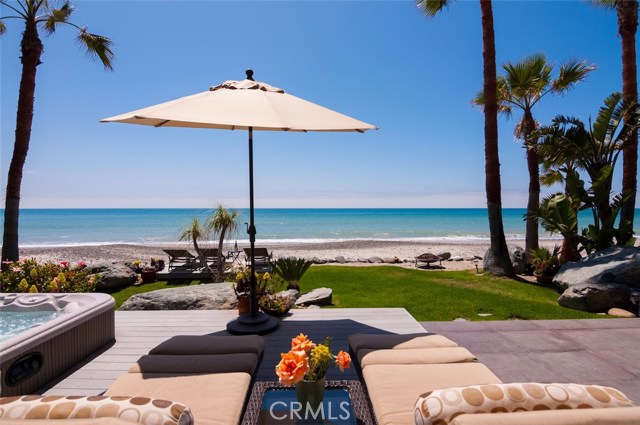 One of the largest homes and largest lots on Beach Road. Spectacular contemporary home on the sand with soaring ceilings and expansive windows with 180 ocean views. This is a rare "private" beach in Orange County with no road or boardwalk between you and the water. Enjoy your beachfront hot tub and large patio in privacy while taking in the views from Dana Point and Catalina Island to the San Clemente Pier. You are welcomed into the entry with an interior koi pond and floating granite staircase. The master bathroom features both a steam room and a sauna to compliment the large jacuzzi tub. Large open rooms are throughout, en-suite bathrooms are throughout, and large walk-in closets, and you will enjoy a gourmet kitchen with two dishwashers and true commercial range, griddle, and grill, oversized laundry room with two sets of washers & dryers, etc., etc. Designed by an award-winning builder and world-renowned architect Ted Wells. Price is monthly and assumes a 12-month lease, but shorter terms will be considered. Please contact for details.Interested in this Listing?