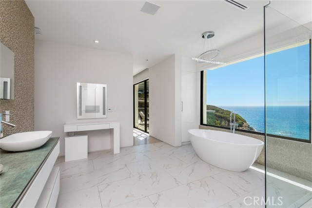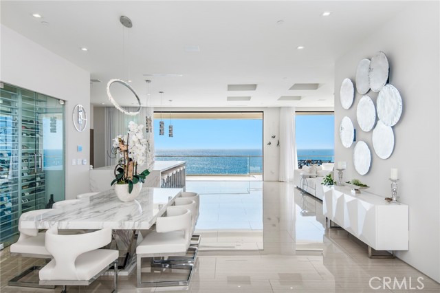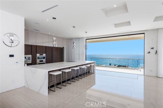 Recently constructed contemporary masterpiece in The Strand at Headlands - a coveted enclave located along the awe-inspiring Dana Point coastline. Sited behind the guard gates, the residence offers nearly 7,400 square feet of immaculately appointed, sleek interiors with an awe-inspiring exterior space, complete with one of the largest pools in the community. The straight-on views of the Pacific and Catalina Island begin at the entryway into this property, with its main level framed by two sets of full-height sliding glass doors spanning the length of the ocean-facing wall. Thoughtfully designed and executed, this floor offers the best in open entertaining space, with a glassed-in wine feature, living and dining areas, an office, and the home's impressive kitchen. Anchored by a bookmatched waterfall edge peninsula large enough to seat six, it boasts a cooktop and built-in coffee machine by Gaggengau, as well as a suite of Bosch appliances. Discreetly hidden, a large walk-in pantry maximizes the storage. Capitalizing on the views, the large balcony offers secondary dining and lounging areas. A modern floating staircase connects all three stories, with the upstairs dedicated to sleeping quarters. The soothing views of the Pacific extend to the primary retreat, complete with a balcony, a fireplace, and a sitting area. An expansive bathroom with a standalone ocean-facing tub, an oversized shower, and dual walk-in closets enhance the luxury of the owner's suite. Accessible by stairs and the home's elevator, the lowest level is the ultimate in California entertaining, with an impressive movie theater, a secondary living room, an Arabescato Corchia marble island, and beverage refrigerators. Blending seamlessly with the outdoors, this floor includes access to the impressive infinity edge pool with a spa, a conversation pit with a fire feature, and an outdoor kitchen. Offering privacy and convenience, the ensuite secondary bedrooms are found on both the upper and lowest levels. Property highlights include an elevator, interior and exterior security cameras, and a Control4 Smart Home system. Car enthusiasts will undoubtedly revel in the spacious four-car garage. The Strand is renowned for its residents-only amenities: a clubhouse with a pool, spa, and gym, as well as direct beach access.Interested in this Listing?