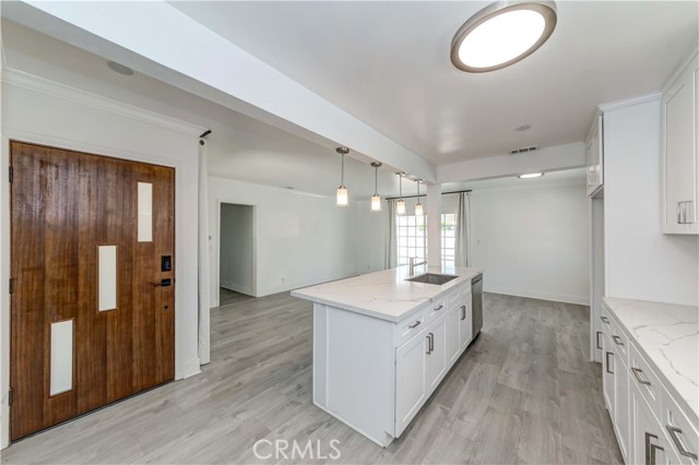 Stunning Single-Level Gem in High-Demand Fullerton! Welcome to this beautifully remodeled 3 bed, 2 bath home, offering approximately 1,069 sq ft of thoughtfully designed living space on a 6,120 sq ft lot. With modern touches throughout, this home is a true standout. As you step through the custom front door, you'll be greeted by an open-concept floor plan that seamlessly connects the living room, formal dining area, and a completely remodeled kitchen. The chef's kitchen boasts quartz countertops, a custom backsplash, chic white shaker cabinets, stainless steel appliances, and a large center island with a built-in sink and accent lighting perfect for cooking, entertaining, or casual dining. The primary suite features ample closet space and a stylish ensuite bath, complete with dual limestone sinks, a dimmable anti-fog mirror, and a remodeled shower for a spa-like experience. The two additional bedrooms are generously sized with ample closet space, sharing a beautifully updated hallway bath also equipped with a dimmable anti-fog mirror and modern finishes. Additional highlights include: Convenient indoor laundry, 2-car garage with backyard access, Spacious backyard with a covered patio ideal for entertaining, Fully remodeled kitchen and baths, Gorgeous laminate flooring, Porcelain tile in bathrooms, Newer roof and paint, Fingerprint access doors, Google Nest thermostat, and central AC! Located just minutes from shopping, parks, top-rated schools, dining, entertainment, and with easy access to the 5 and 91 freeways, this home offers the perfect blend of style, convenience, and comfort. Don't miss your chance to call this beautifully remodeled home yours schedule a private showing today!Interested in this Listing?