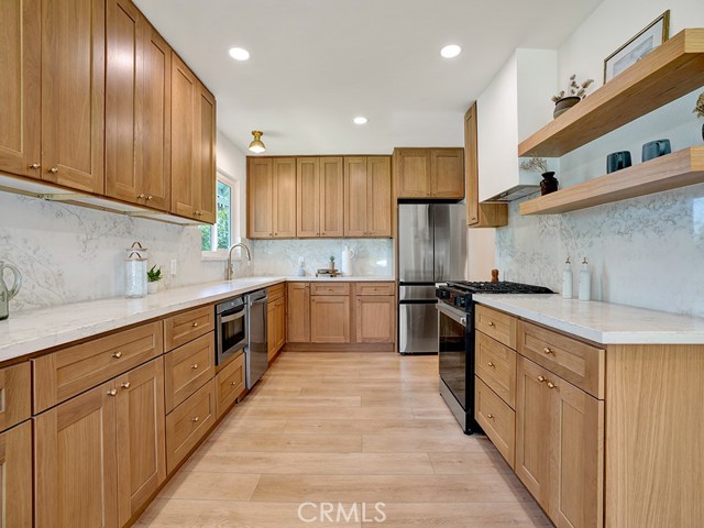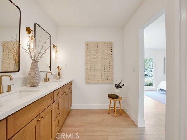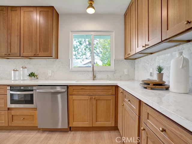 Welcome to your private oasis this newly renovated pool home, gracefully positioned on an expansive corner lot, blends modern sophistication with relaxed California living. From the moment you enter, an atmosphere of refined elegance unfolds, where light, space, and design harmonize seamlessly. At the heart of the home, a stunning contemporary kitchen invites culinary creativity. Quartz countertops and full-height quartz backsplash set a striking tone, complemented by designer fixtures, sleek floating shelves, and premium stainless steel appliances. The open-concept layout flows effortlessly into the formal dining area ideal for intimate dinners or lively gatherings. The expansive living room is anchored by a show stopping marble fireplace, creating a warm yet upscale focal point for entertaining or unwinding in style. Wide plank white oak luxury vinyl flooring flows throughout, paired with LED recessed lighting, fresh designer paint, and all-new baseboards and casings each detail curated for a polished, cohesive aesthetic. The generous primary suite is a tranquil retreat, bathed in natural light, and complete with a spa-like ensuite bath. Indulge in a dual vanity with designer finishes, an artfully tiled walk-in shower, and Starphire glass a space where luxury and comfort meet effortlessly. The secondary bedrooms are both generous in size with ample closet space. The hall bath features a contemporary floating vanity, free standing soaking tub, designer fixtures and a walk-in shower. A California room can be utilized as a sunroom, vibrant game room or an indoor-outdoor cabana retreat. Oversized dual-pane windows and new sliding glass doors invite you to step outside into a fully reimagined backyard an entertainer s dream with paver walkways, a sparkling pool, and serene spaces to dine, lounge, or soak up the sun. Modern conveniences abound, including a smart thermostat, video doorbell, updated outlets and switches, and a dedicated laundry area with Samsung washer and dryer. This home is more than a place to live it s a lifestyle, offering sophisticated design, thoughtful updates, and an unmatched indoor-outdoor experience. A rare opportunity to own a turn-key sanctuary where everyday living feels like a private resort.Interested in this Listing?
