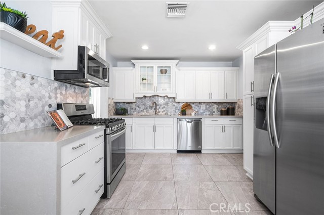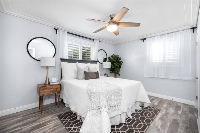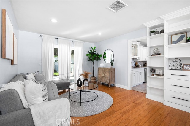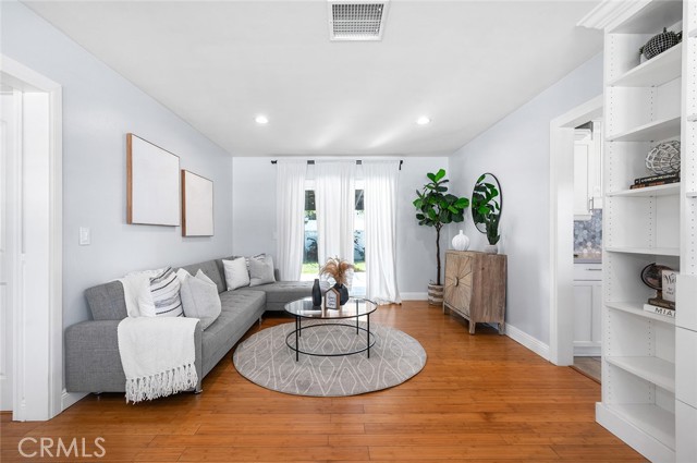 This well-maintained single-story home in a quiet Fullerton neighborhood offers 4 bedrooms, 2 bathrooms, and 1,157 sq.ft of living space. Set on a peaceful interior street, the home features excellent curb appeal with a new vinyl fence, beautiful landscaping, and a roof that's only 4 years old. Inside, the open floorplan connects the living room and kitchen, creating a spacious, inviting space. The kitchen has been thoughtfully updated with white shaker cabinets, sleek quartz countertops, a marble hexagon backsplash, and stainless-steel appliances, including a gas range, microwave, and dishwasher. Additionally, this Home is loaded with modern upgrades such as smooth ceilings, recessed lighting, and bamboo flooring throughout the living areas. Many rooms have plantation shutters, and dual-pane windows let in plenty of natural light. The primary bathroom has a walk-in tile shower, upgraded vanity, and fixtures. The guest bathroom is equally stylish with a hexagon tile shower, new vanity, fixtures, and a tub/shower combo. The three additional bedrooms are roomy and well-lit, each offering plenty of closet space. The backyard is a standout feature, with a large, covered patio perfect for entertaining, plus a storage shed and extra parking. The detached garage is just steps from the patio and could easily be used for parking or additional space for entertaining. Laundry is conveniently located in the garage. This home also comes with a new HVAC and ducting system, and it is located near the 91 and 5 Freeways, as well as shopping, parks, and major attractions like Knott s Berry Farm and Disneyland.Interested in this Listing?