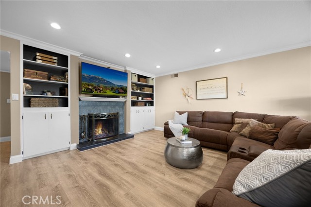 Come home to this rare and beautifully updated single-story retreat tucked into a quiet cul-de-sac in the hills of Fullerton, just steps from Hillcrest Park. Thoughtfully upgraded throughout, this spacious ground-level, three-bedroom home offers panoramic views of treetops, rolling hills, and snow-capped mountains from nearly every window. The kitchen boasts granite countertops, stainless steel appliances, a premium Thermador gas range with griddle, and walnut cabinetry perfect for both entertaining and daily living. The open-concept living area features luxury plank vinyl flooring, recessed lighting, and a charming fireplace with custom built-ins, flowing effortlessly into a wraparound patio that invites indoor-outdoor living. Down the hall, you ll find three generously sized bedrooms, two with walk-in closets and custom window treatments, including a spacious primary suite with panoramic views, private patio access, a large walk-in closet, vanity area, and a renovated en-suite bath. The home also features updated major systems, ceiling fans, modern raised panel doors, and upgraded trim. Located just minutes from top-rated schools, Cal State Fullerton, scenic trails, and Downtown Fullerton known for its renowned dining and shopping this home blends serene seclusion with unbeatable convenience. HOA amenities include a pool, tennis courts, fitness center, and coverage for water, sewer, and trash. A detached 1-car garage is located just a short walk from the unit.Interested in this Listing?