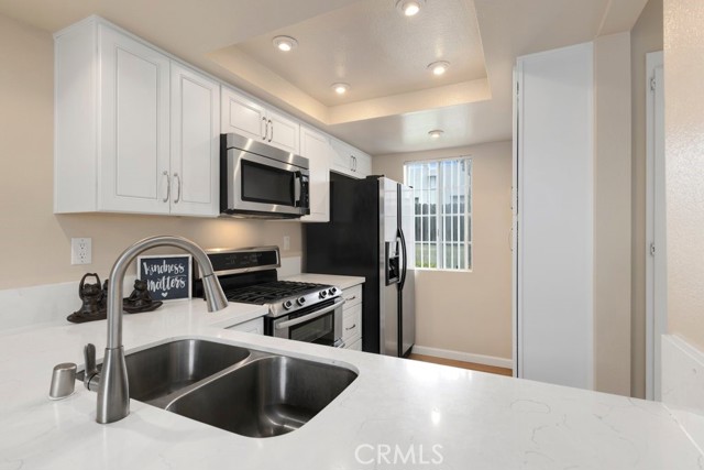 Step into this beautifully updated 1-bedroom, 1.5-bath, 2-story townhouse that combines modern comfort with timeless charm. Featuring soaring two-story ceilings in the living room, this light-filled home is bathed in natural sunlight through a dramatic oversized window. The open layout seamlessly connects to a cozy private patio perfect for hosting guests or relaxing with a BBQ in your own serene outdoor space.The remodeled kitchen boasts stylish finishes and plenty of cabinetry, while the upgraded half bath on the main level adds extra convenience for visitors. Upstairs, the spacious bedroom suite offers privacy, comfort, and a full bathroom, ideal for a tranquil retreat.Other highlights include elegant laminate wood flooring throughout, in-unit interior laundry, and a detached 1-car garage for secure parking and extra storage. With thoughtful upgrades and a welcoming layout, this townhouse is move-in ready and waiting to be called home.Interested in this Listing?