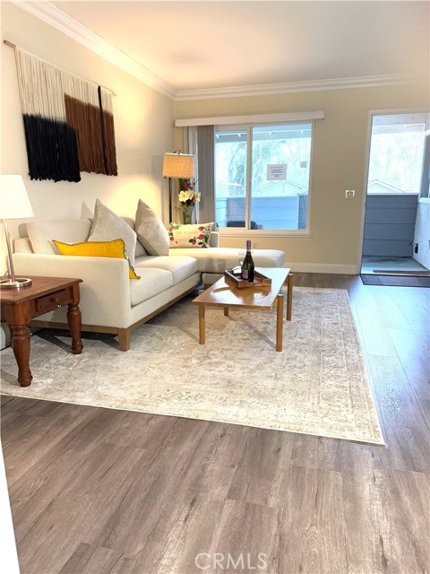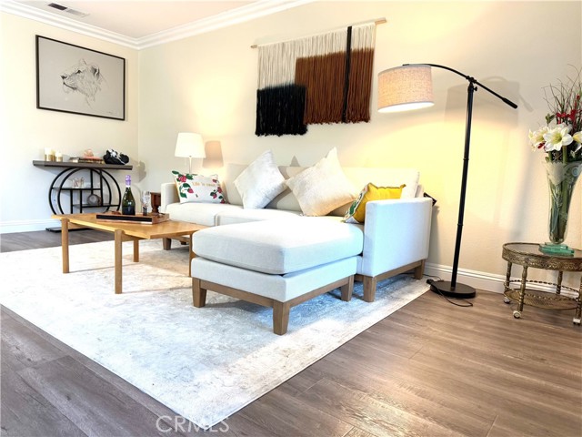 A "MUST-SEE" This cozy end-unit (attached only on one side with no one above or below) upper level entrance provides added privacy with a covered porch, featuring 2 bedrooms and 1 bathroom. This single-level unit with double pane windows offers bright and airy living room which is open to the dining area. Updated kitchen with quartz countertops and stainless steel appliances. Walk down the hall through the double doors to find spacious master bedroom with Walk In Closet. Convenient 2-car garage below in addition to plenty of guest/street parking. Take advantage of all the wonderful amenities: association pool/spa, sports court and a playground for children in a park-like setting. Surrounded by single family residences and conveniently located near hiking/biking trails, Los Coyotes Golf Course, Clark Regional Park. Award famous winning schools: Sunset Lane Elementary, Parks Junior High and open enrollment for Sunny Hills High School.Interested in this Listing?