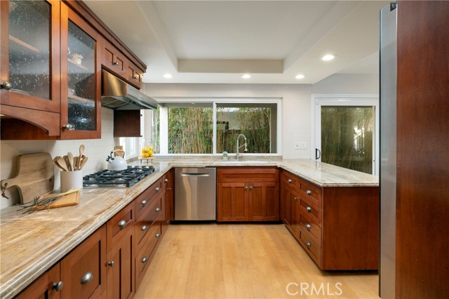 Discover luxury coastal living in this stunning 4-bedroom, 2.5-bath custom home located on prestigious Humboldt Island in Huntington Harbour. Situated on one of the island s largest lots, this 2,433 sq ft residence has been thoughtfully upgraded. The expansive backyard is a true private oasis, perfect for entertaining or relaxing in style. Enjoy a sparkling new pool with soothing water features, a Baja shelf, submerged seating, and a bubbling spa. The outdoor kitchen is outfitted with Quartz stacked-stone finishes, a built-in sink, refrigerator, and premium FireMagic grill. Surrounded by lush tropical landscaping, stacked stone planters, and scored concrete decking, the space is completed by a covered patio and artificial turf. Impressive curb appeal greets you with stacked stone siding, a new roof, manicured grounds, an interlocking paver driveway with EV charging station, and a private gated courtyard. Step through double wrought iron and rain glass entry doors into a light-filled interior featuring soaring ceilings, multiple skylights, and refinished Maple hardwood floors. The open-concept floor plan includes a dramatic staircase with wrought iron railings, a grand foyer, a spacious formal living room with walls of glass and a custom fireplace, and an elegant formal dining room ideal for entertaining. The chef s kitchen boasts Narcarado Quartzite countertops, subway tile backsplash, Mahogany cabinetry with hand-blown glass insets, pull-out drawers, and premium appliances including a Thermador 5-burner cooktop, Wolf oven, and Wolf microwave. It opens to a sunny breakfast nook and an oversized family room with built-in office niche. Upstairs, the serene primary suite features a cedar-lined, custom-organized mirrored closet and a luxurious ensuite bathroom with granite countertops, dual sinks, designer tile, and a walk-in shower. Three additional spacious bedrooms include one with a walk-in closet, and a beautifully remodeled guest bath with Limestone vanity and a Travertine-style shower/tub surround. Additional amenities include fully paid solar system, security surveillance, recessed lighting, dual pane windows, coffered ceilings, surround sound system, water purification system, tankless water heater, upgraded 200 AMP electrical panel and 100 Amp sub-panel and finished garage. Just steps from the harbor and close to top-rated schools, this exceptional home offers a rare opportunity to live in one of Huntington Harbour s most coveted communities.