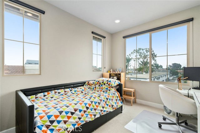 Fabulous Regatta by Meritage Homes - Newly completed in 2022. Close to the surf, pier, shopping, pickleball courts, and all the entertainment and dining at Seacliff Shopping Center, Main Street and Pacific City. This incredible premium end-unit location offers the largest model with 4 generous bedrooms and 3.5 baths. This floor plan includes a main level bedroom with private bath designed with wider door openings, generous sized shower and lower countertops. This Light and Bright home includes over $75,000 in after-market upgrades featuring additional custom cabinetry, closet organization systems, and more! The beautifully designed floor plan is highlighted with tall ceilings and many over-size windows for lots of natural light throughout the home. The main living space on the second level is open and spacious with a large sunrise view lanai ideal for outdoor dining and entertainment. The modern chef s kitchen is equipped with a large center island finished with custom quartz countertops and a breakfast bar. Energy-efficient stainless steel appliances, custom backsplash, and beautiful white cabinets with soft-close drawers are great finishing touches. This level also includes a spacious family room with custom built-ins, large dining area, and the guest bath. The top level gives you 3 more bedrooms, including the spacious primary suite with sunset views. The primary offers a large fully upgraded walk-in closet, and private bath with a luxurious walk-in shower and dual wash basins surrounded with quartz counters and added linen cabinets. A large laundry room is also located on this level for added convenience. This new 2022 construction is beautifully finished in wood-vinyl wide-plank flooring, recessed lighting, modern lighting fixtures, dimmer switches, and $20,000 in upgraded plantation shutters and blinds. Additional features include the whole-house fan, dual zone air conditioning and heating systems, energy efficient tankless water heater, 360-degree camera security system, and $7,000 in custom acoustic designer wall paneling. The direct access spacious two-car garage includes EV charging, upgraded epoxy flooring, and custom paint. Easy walk or bike ride to Huntington Beach High, the elementary and Jr. High schools and short bike ride to the year-round events at the beach and pier. This home is move-in ready for you to immediately enjoy the beach life in beautiful Huntington Beach!Interested in this Listing?