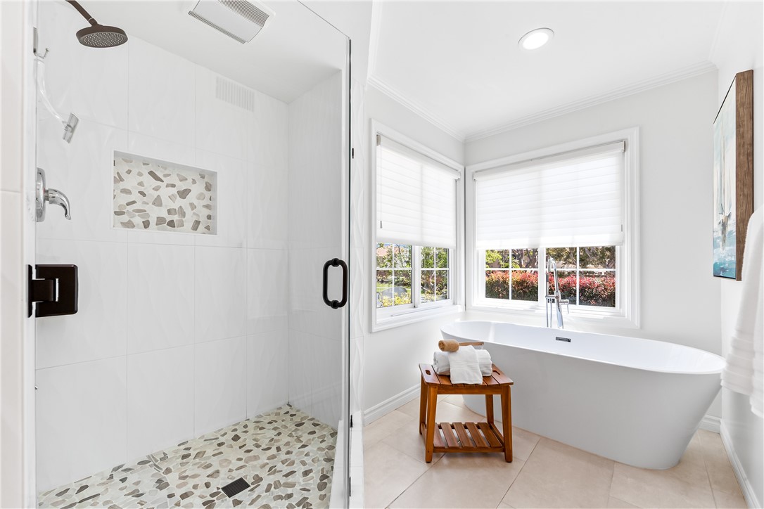 Representing the epitome of coastal luxury within the esteemed confines of the premier private community of Seacliff on the Greens. Enjoy the tranquility of coastal living while being just one block away from the surf and sand of the beautiful Pacific Ocean. This distinguished Estate residence is located well within the gated and meticulously maintained grounds. With open, flowing spaces that capitalize on the natural light. Expansive windows throughout flood the living areas with sunlight, while vaulted ceilings, recessed LED lighting, and wide-plank wood floors enhance the sense of space and warmth. Spanning 4,000 square feet, this home features a formal living and dining room, kitchen, den with full bathroom, family room, indoor laundry, and guest bathroom on the main floor. Upstairs you will find 3 bedrooms, including the primary suite, and an oversized media room (could be 4th bedroom, if desired). Expansive and exquisitely appointed, the primary bedroom beckons two generous custom designed closets that includes glass front cabinetry. The primary bath has been remodeled to embrace the coast lifestyle and includes a soaking tub, separate shower and dual sinks. The heart of the home is the gourmet kitchen, where coastal cabinetry, a quartz-topped island, and stainless steel appliances come together to create a space both functional and beautiful. Exquisite hardscapes and meticulously curated landscaping further enhance the sense of privacy and tranquility, ensuring that every moment spent in this secluded haven is nothing short of extraordinary. The entire yard was recently renovated to include an outdoor built-in bbq, concrete countertop and multiple areas for outdoor entertaining - a constant reminder of the splendor that surrounds the home. Included in the outdoor oasis incles an Life Barrel Ergo Elegance Series 4 person sauna, Model EE6G and outdoor shower to relax after your days at the beach, surfing, workouts and for moments of relaxation. Revel in the gentle ocean breezes, located next to Huntington Club Golf Course for golf and tennis, delightful shopping, acclaimed schools, and the renowned dining and entertainment of Downtown Huntington Beach, complete with its iconic pier. Home includes paid off Tesla Solar that has allowed the seller to produce enough electricity to have little to no monthly electric bills. A 3 car split garage and an additional 4 cars fit in the driveway.