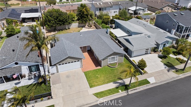 Incredibly ocean close home. Located in a Fantastic-Family-Friendly neighborhood. You can feel the ocean breezes from this expanded single-story home. Within short walk to HB award winning elementary school Peterson. Enter this home through a tiled courtyard (could be enclosed for complete privacy). To your right you will notice the French doors that open into the sundrenched, expanded family room or great room complete with built ins, open beamed ceiling and lots of windows. Also included is a pool table. Great for family fun and memory making moments. Entering the front door, you notice the living room with a cozy fireplace and recessed lights. There is a bright kitchen with white cabinets and granite counters, a small pantry and tiled floor, refrigerator is included. There is plenty of room to expand the kitchen and have a more open floorplan if that is included in your dream home. The possibilities of this home are endless. Laminate wood type flooring throughout the living room and the bedrooms. All bedrooms have a ceiling fan. The primary bedroom has a walk-in closet and an attached bathroom with a tiled walk-in shower. The hall bathroom is complete with a tub/shower combination. Secondary bedrooms have mirrored closet doors. The roof was replaced in 2021. The garage is drywalled and clean with an epoxy floor. There is a set of French doors off the dining room to access the large private back yard. Block walls surround this awesome yard. It is just perfect for entertaining and hosting BBQ and get togethers with Family and Friends. Another perk is that this home is a short bike ride to down town Huntington Beach, where you will find bike trails, restaurants, shopping and the iconic HB Pier. Definitely a great place to call home and live near the coast to enjoy the California Lifestyle!Interested in this Listing?