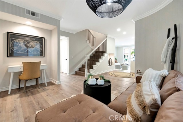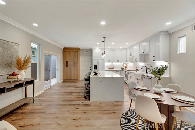 Experience the pinnacle of coastal luxury in this fully remodeled Ocean Pointe residence, offering nearly 2,700 square feet of sophisticated living just steps from the sand, dog beach, and the vibrant heart of Downtown Huntington Beach. Thoughtfully updated from top to bottom, this elegant home features 3 spacious bedrooms, 2.5 baths, and an open-concept layout designed for seamless indoor-outdoor living. Step into a warm and welcoming living room with a cozy fireplace and direct access to the newly hardscaped front patio, perfect for enjoying ocean breezes. The main level flows effortlessly into a formal dining area and an entertainer s dream kitchen, complete with premium stainless steel appliances, a center island with bar seating, a charming dining nook, and stunning quartz countertops with a matching backsplash. Upstairs, the expansive primary suite serves as a serene retreat with its own fireplace, private balcony, and generous closet space. The spa-inspired en-suite bath showcases dual sinks, a dedicated vanity area, a soaking tub, and a walk-in shower highlighted by elegant gold finishes. Two additional bedrooms share a stylish Jack & Jill bathroom with dual vanities and a combined tub/shower. Convenience is key with an upstairs laundry room and a third-floor flex space that opens to a versatile rooftop deck with panoramic ocean views! Additional upgrades include luxury vinyl plank flooring, custom interior paint, energy-efficient windows and doors, designer lighting, recessed lighting throughout, and brand-new exterior landscaping and hardscaping. The attached two-car garage offers built-in storage, epoxy flooring and direct access to the kitchen for added ease. This is a rare opportunity to own a turn-key coastal home in one of Southern California s most desirable beachside communities. Live just blocks from the ocean with world-class shopping, dining, and endless outdoor recreation close by.Interested in this Listing?