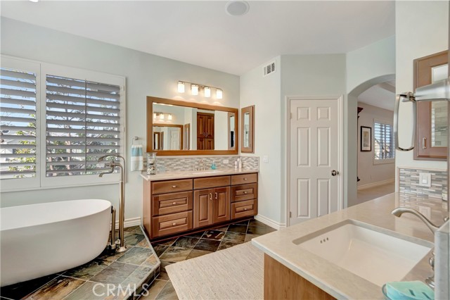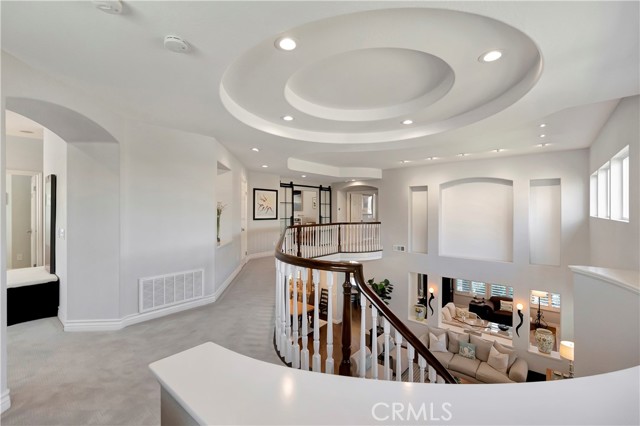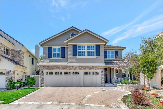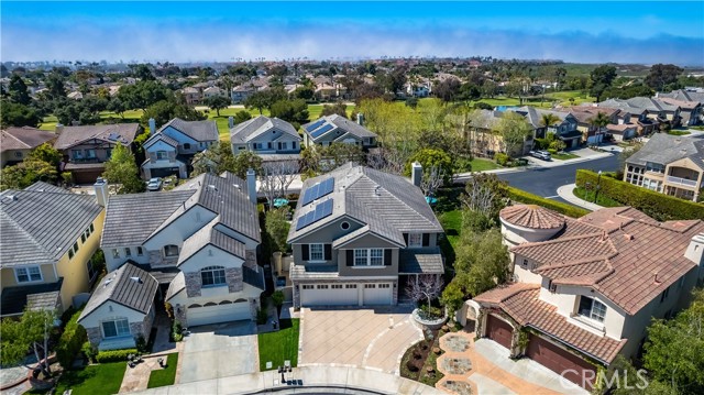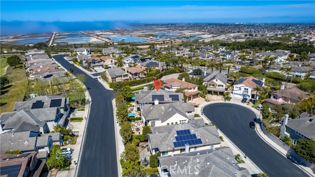 This beautifully upgraded home is situated in the ocean close, guard-gated community of The Peninsula, on an oversized cul-de-sac pie-shaped lot featuring an exquisitely landscaped, very sunny, entertainer's backyard. Spanning almost 3500 square feet, the residence includes four bedrooms, one of which is conveniently located on the main floor with an en-suite bath. The upper level boasts a loft equipped with built-in desks for an office area, as well as a spacious bonus room that can easily be converted into a fifth bedroom + an office with built-ins that can also be converted into an additional bedroom. The family gathering room that is open to the kitchen is inviting, complete with a cozy stacked stone fireplace. The kitchen has been completely remodeled, featuring new cabinetry, quartz countertops, a central preparation island with seating, a bar area, a wine cooler, and a reverse osmosis system. It also includes a sunlit breakfast nook with views of the beautifully landscaped surroundings. The grand primary suite offers an a picturesque ocean, golf course and greenbelt view balcony and an expansive remodeled master bath, which showcases quartz countertops, dual sinks, a make-up vanity, a large free-standing soaking tub, a separate walk-in shower, and a generous walk-in closet with custom built-ins. Upstairs, the spacious secondary bedrooms are adjacent to a beautifully remodeled bath, which includes dual sinks and a shower/bathtub combination. The conveniently located laundry room on the second floor features new cabinetry and quartz countertops. The three-car attached garage has epoxy flooring and ample built-ins for storage. The backyard is an entertainer's dream, complete with a built-in BBQ center, tranquil fountains, and a large lush sunlit grass area perfect for a pool. Home is upgraded with a Culligan water softener and fully paid solar. This home is ideally located at the end of a cul-de-sac with no homes directly behind it, within walking distance to several parks, wetlands walking trails, the beach, and the award-winning SeaCliff Elementary School, recognized as a California Distinguished School.Interested in this Listing?