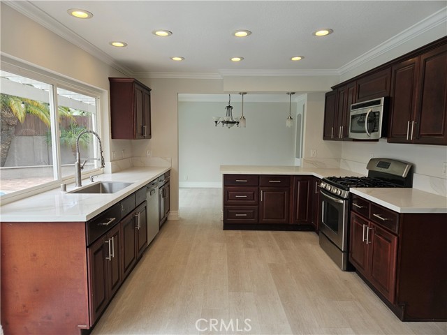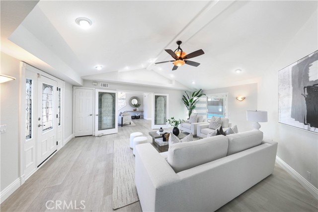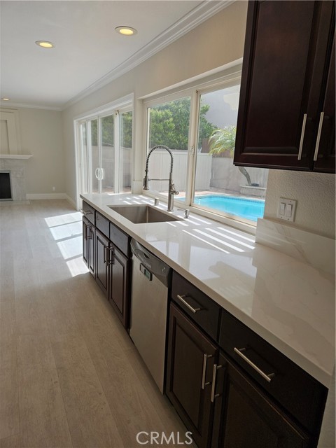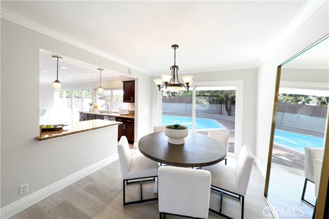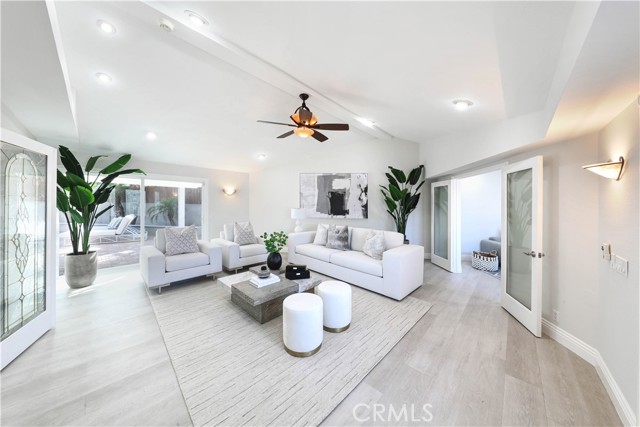 The luxuries of coastal living are brought to life in this recently refreshed pool home perfectly located on an expansive interior lot at the end of a quiet cul-de-sac. Vacation vibes are found throughout the airy open concept floor plan, with four bedrooms and three bathrooms encompassing ~2825 square feet. A coveted ground level bedroom is combined with upper-level primary suite and two additional bedrooms. The newly repainted interior features an on-trend color scheme with crisp white baseboards and ceilings while new LED canned lighting illuminates most of the house. The home is serviced by a newer (2023) Aquasana Rhino whole house water filtration and conditioning system, newer tankless hot water heater and newer (2023) high efficiency air conditioner and furnace. The living room with fireplace, family room and dining room are joined by a large, vaulted ceiling multi-purpose space while an additional room was previously used as a media room but could be easily converted to a fifth bedroom with en suite bath. A large sunlit kitchen features beautiful quartz counters, stainless appliances and plenty of cabinet and cupboard space. Much of the home overlooks an entertainer s backyard with sparkling pool (that includes new Pentair filter, pump and heater), a trellised patio and extended fencing for additional privacy. New exterior stucco is tastefully paired with newly painted eaves and fascia boards. A side yard features pet friendly artificial turf for those four-legged friends. Copious built-in storage is available in the two car garage which also features a new Tesla 240v charging station, epoxy flooring and a work bench. Large driveway can accommodate boat or RV parking.Interested in this Listing?