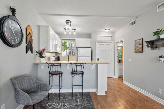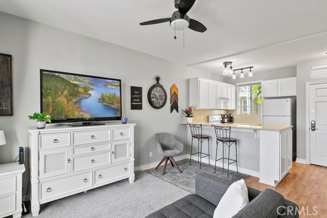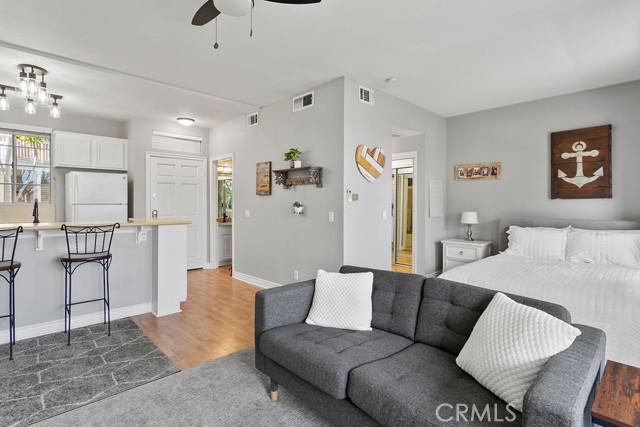 LOWEST-PRICED property in HB with private laundry! Charming studio condo located in a 24-hour guard-gated community less than a mile and a half from the beach. Open layout featuring a kitchen with sit-down bar, living area, full bathroom, sleeping area, dual closets, and spacious private balcony with storage closet. Additional features include modern lighting and fixtures, stackable washer/dryer (purchased in 2023), and a mini-split HVAC system (2021). Convenient elevator access from the subterranean parking area is ideal if you need to avoid stairs. Amenities offered within the community include pools & spas, fitness center, sauna, clubhouse, tennis courts, and greenbelt areas. HOA fee includes water, trash, exterior maintenance & insurance, as well as amenities. The roofs were replaced in 2024.Interested in this Listing?