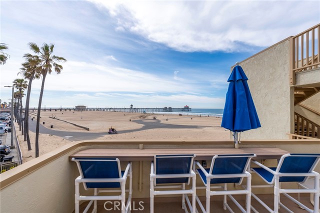 SINGLE STORY CONDO Oceanfront location. MOVE IN READY! Come enjoy Resort Living All Year Round! This is a RARE opportunity to own a home, in this Unique Secured Complex that is located right on the beach. Walk out your door and have easy Direct Gated Access to the Iconic Surf City Coastline, along with Private Fire Pit, Bike Path, Pier, and Exciting Main Street Action. As you enter inside this Newly Remodeled Unit, be greeted with an Open Floor Plan, great for family gatherings, and entertaining. Travertine floors flow seamlessly throughout the home, and the Open Kitchen is inviting with white cabinetry, granite countertops, stainless appliances, and an island that offers bar seating, for casual dining. Both Upgraded Bathrooms feature white cabinets, granite counter tops, and stone showers. This unit boasts Heated Ceilings, fresh paint, crown moulding, recessed lighting, and a Stackable Washer/Dryer, for convenience. The bedrooms are good sized and the primary bedroom has a walk in closet, for extra organization. The exterior boasts an Expansive Patio with Whitewater Ocean Views, it is a great place to sit and watch the surfers, sunsets, fireworks, and the famous HB Air Show. This Guard Gated Community includes Subterranean Secured Parking Garage. Two parking spaces are assigned complete with an additional storage locker. Take advantage of Year Round Resort Living with the Sparkling Pool, Spa, Gym, and Clubhouse. Walk to the famous Huntington Beach Main Street and Pacific City for renowned Dining, Shopping, and Entertainment, and close proximity to the other Orange County coastal towns. Come live the Surf City lifestyle and all it has to offer. This METICULOUS UNIT has been very well maintained and CAN BE SOLD w/ FURNISHINGS to be MOVE IN READY!Interested in this Listing?